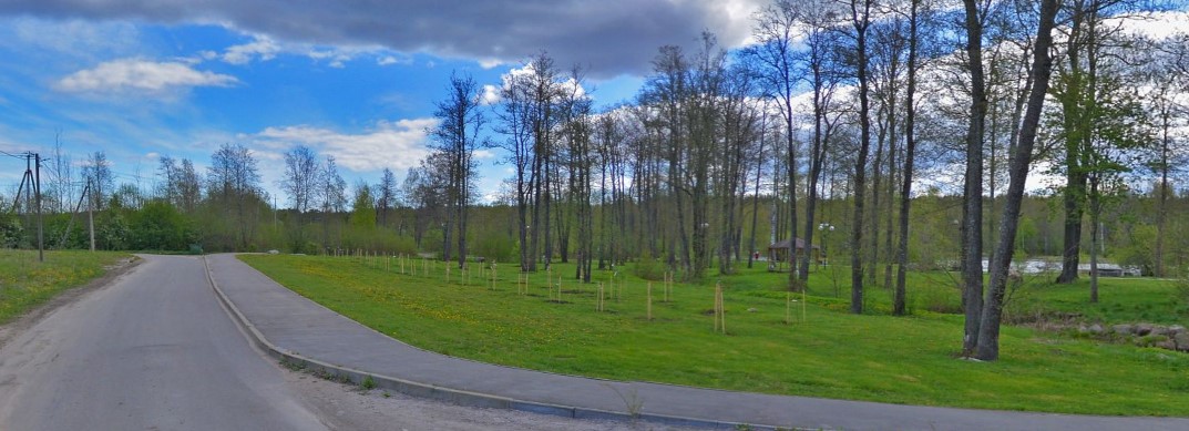 В городе обновлена зеленая зона, где высажены молодые деревья, способствующие улучшению экологической обстановки. Вдоль этого участка проложен тротуар, обеспечивающий комфортный и безопасный проход для пешеходов.