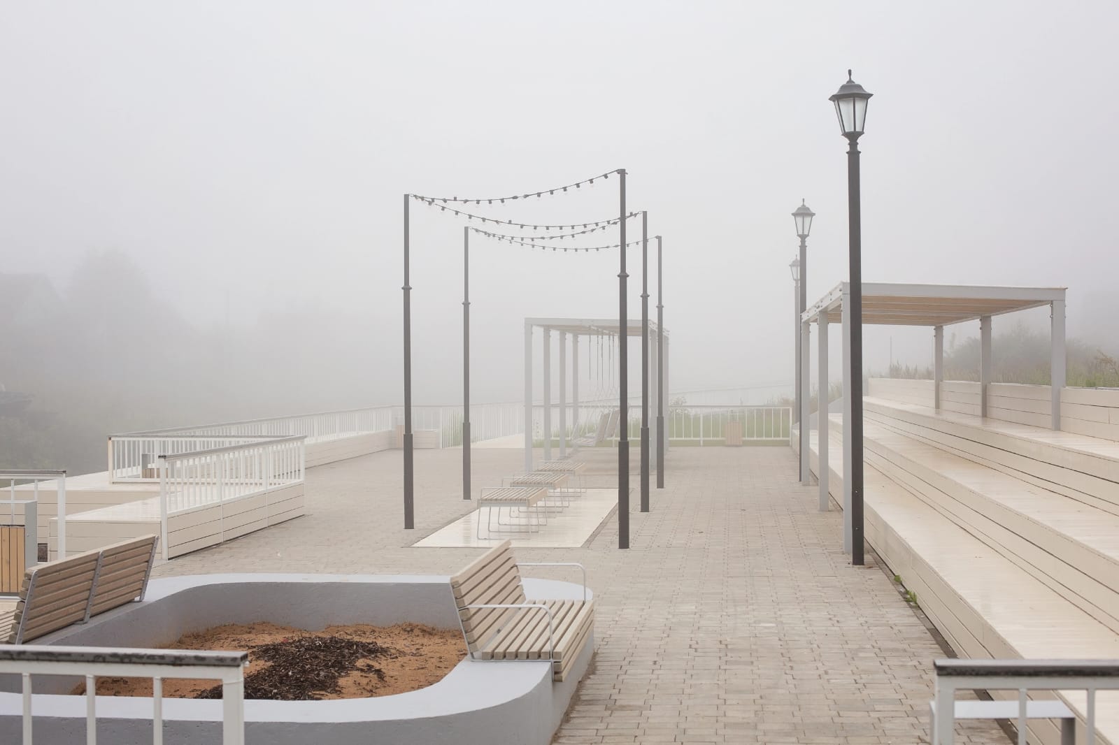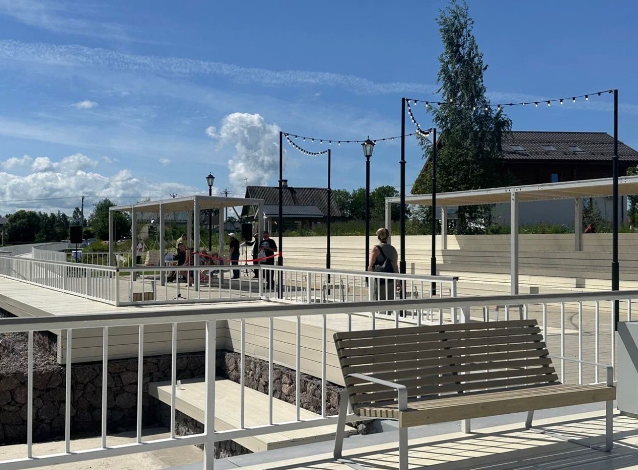 На благоустроенной территории была создана ивовая аллея, разделяющая набережную и церковный ансамбль, выполненная в гранитном отсеве. Спуски к воде и пандус к набережной обеспечивают доступность для всех желающих насладиться природой и водными просторами. Зона отдыха оформлена с деревянной сценой и амфитеатром с навесом, а также включает городские качели в брусчатке и цветники с бетонными подпорными стенками, создающими уютную атмосферу для отдыха.