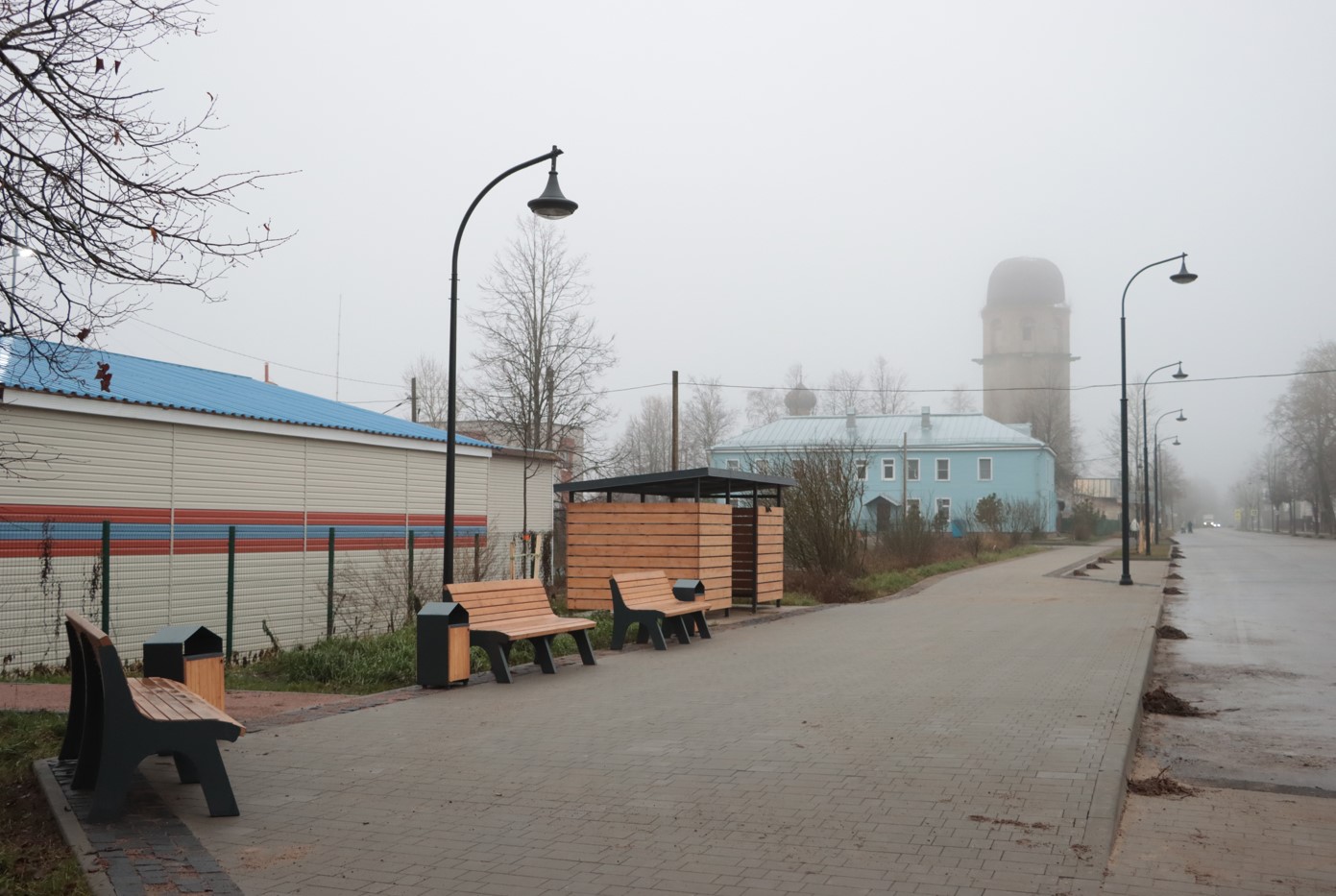Реализован заключительный этап комплексного благоустройства проспект Карла Маркса, начатого в 2020 году. Основные задачи - завершение обустройства плиточных тротуаров вдоль проспекта и создание духовно-исторической точки притяжения как для местных жителей, так и для гостей города, устройство парковки у храма для ММГН. Проектом предусмотрено сохранение аллейности посадок деревьев. Взамен удаленных аварийно-опасных деревьев выполнена заместительная посадка.