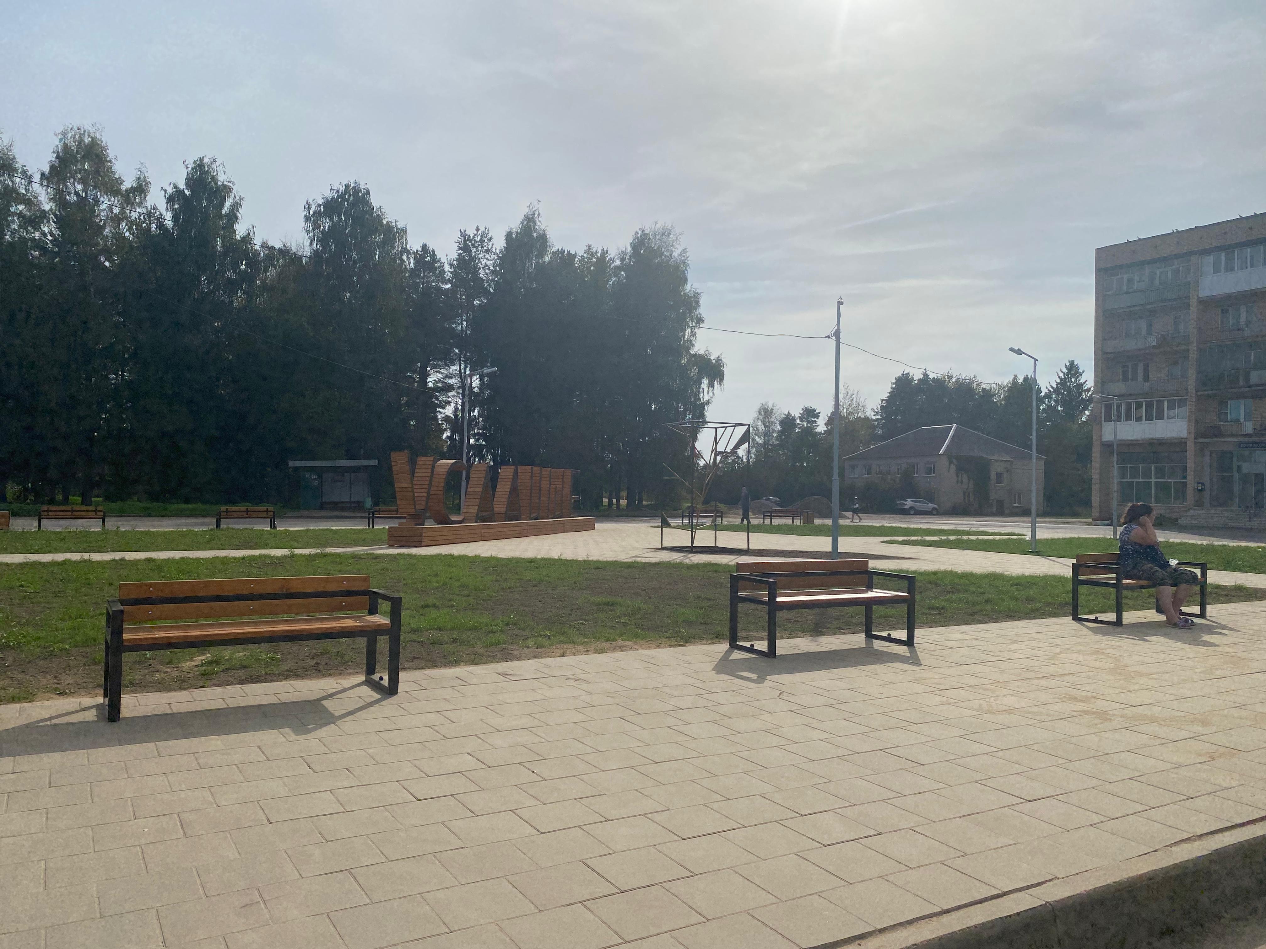 Благоустроенная территория преобразилась благодаря установке удобных скамеек и современных урн, что повысило комфорт для посетителей. Озеленение газоном и создание пешеходных дорожек из брусчатки сделали пространство более привлекательным и доступным для прогулок. В центре территории была установлена инсталляция с названием поселения и арт-объект "яблоня времени", которые стали яркими символами и центром притяжения для жителей и гостей.
