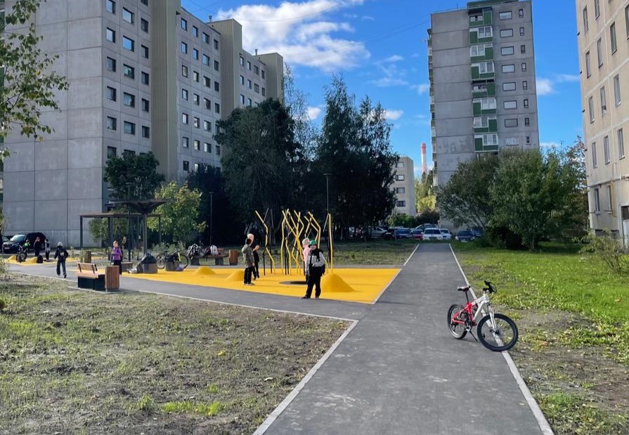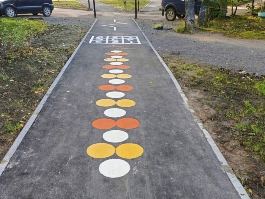 3. На пути к школе расположена игровая и развивающая зона на асфальте, стимулирующая творческое мышление и моторику детей в процессе повседневных прогулок.