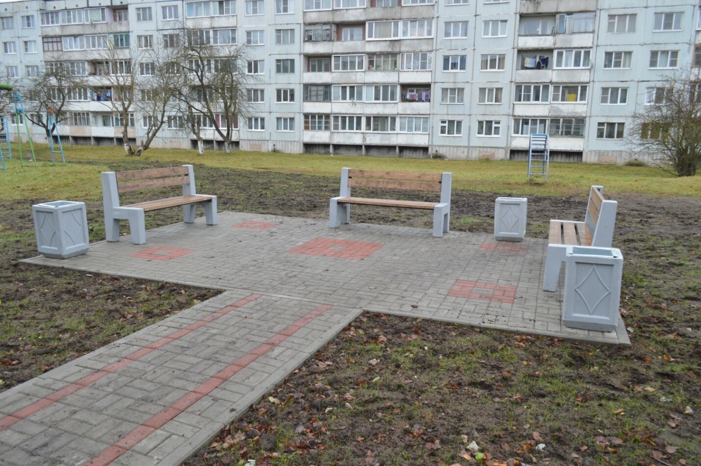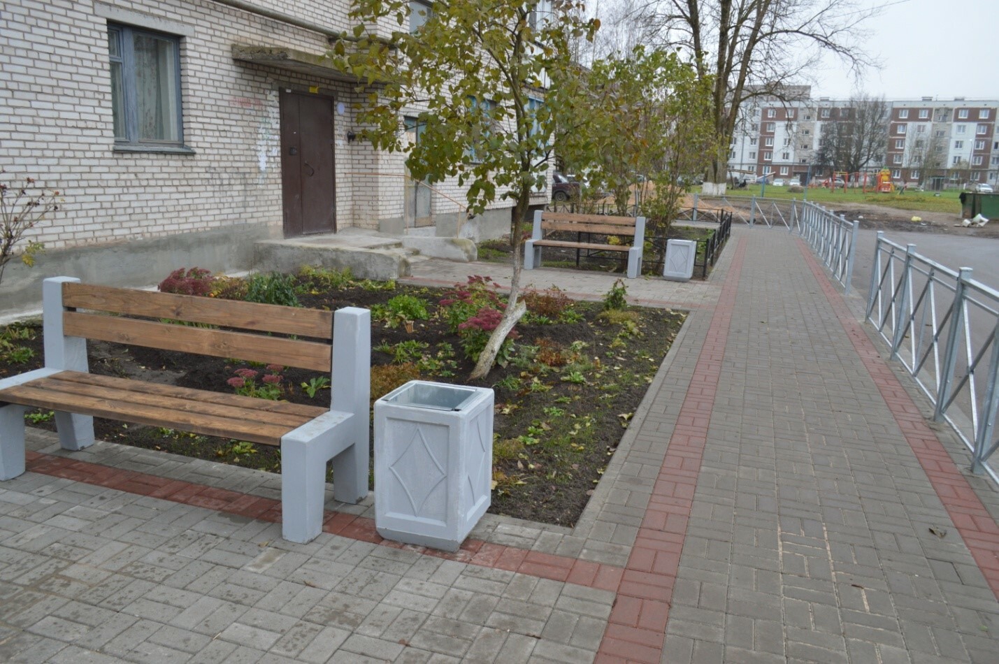-установлены малые архитектурные формы (скамейки, урны),