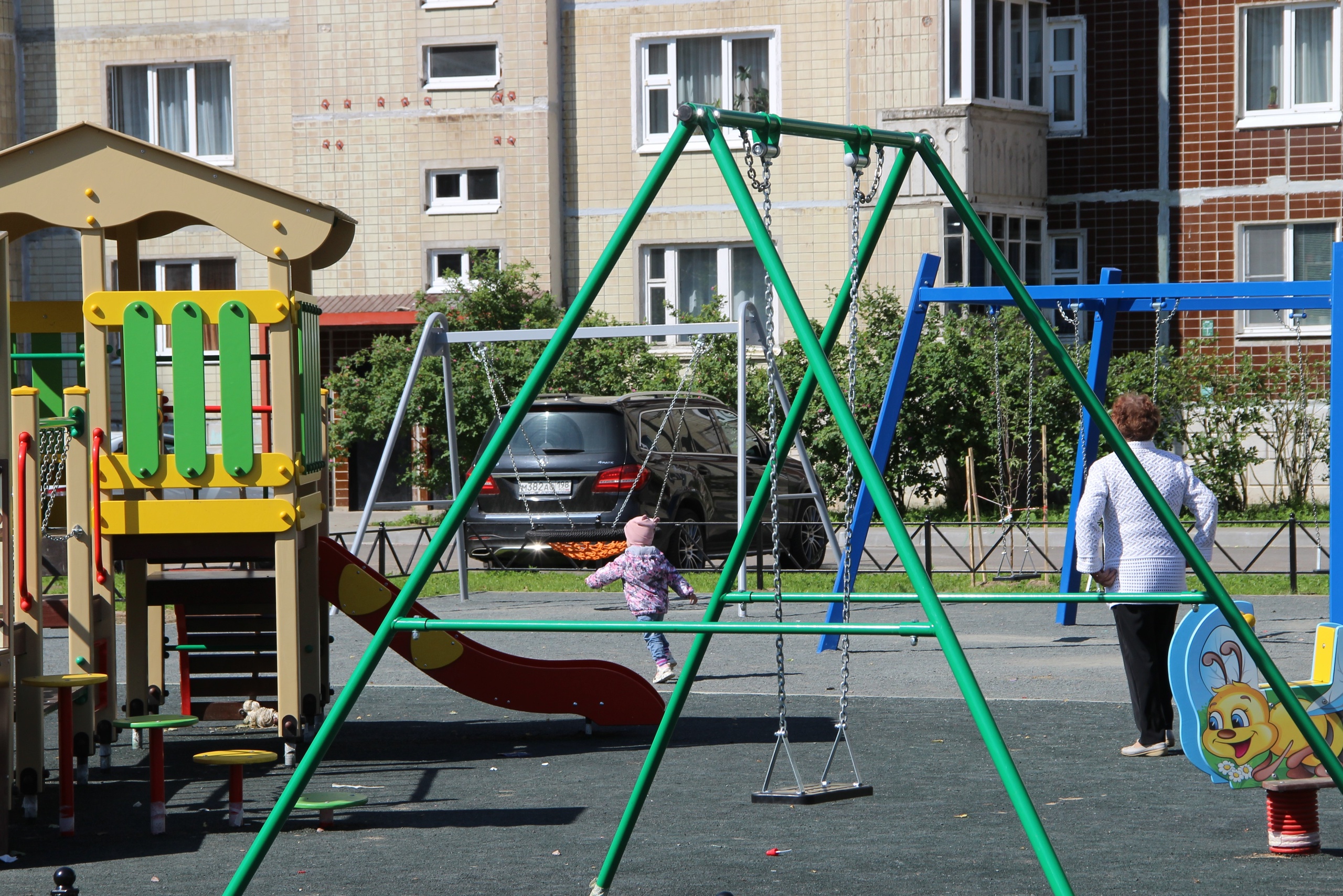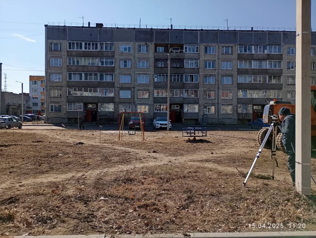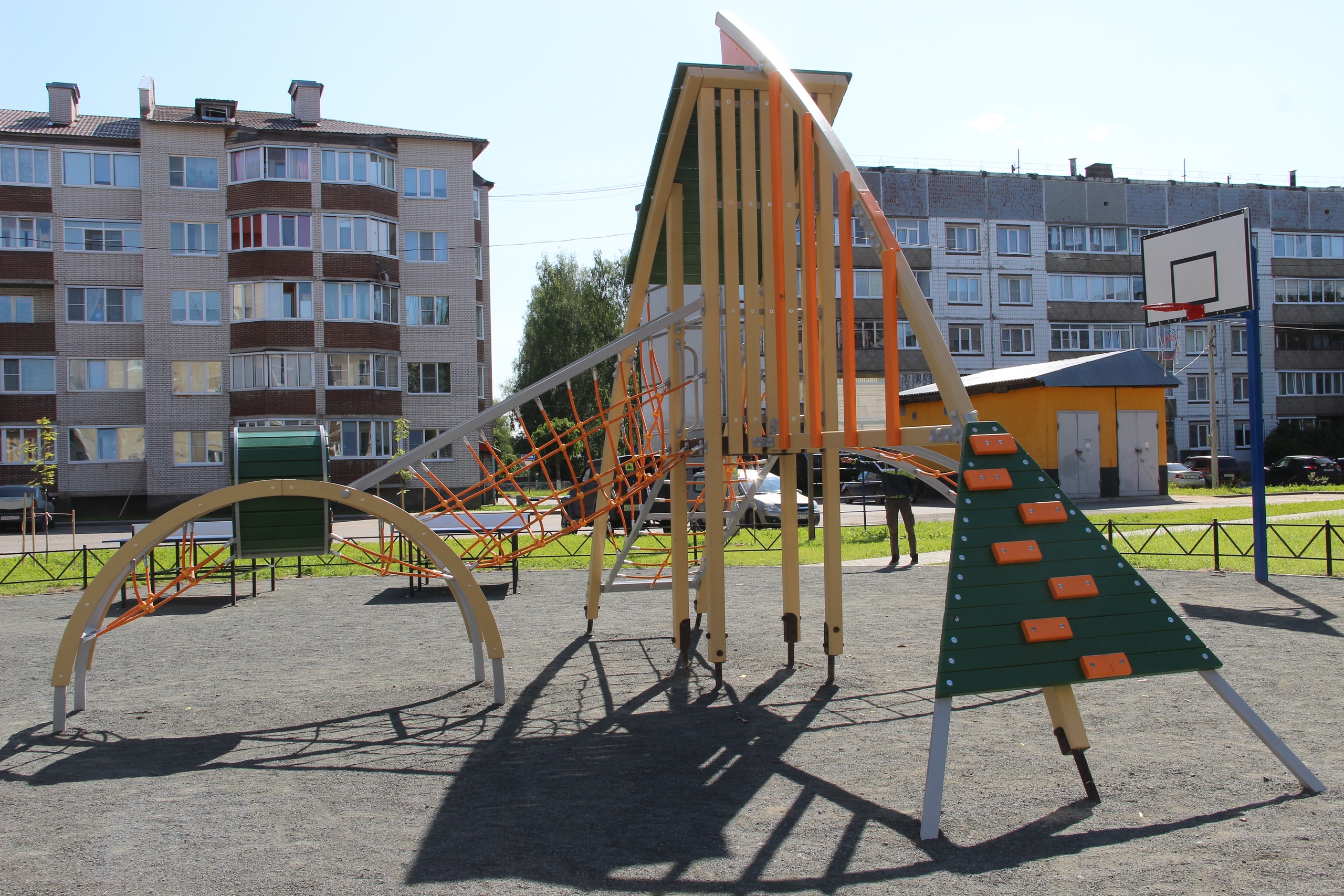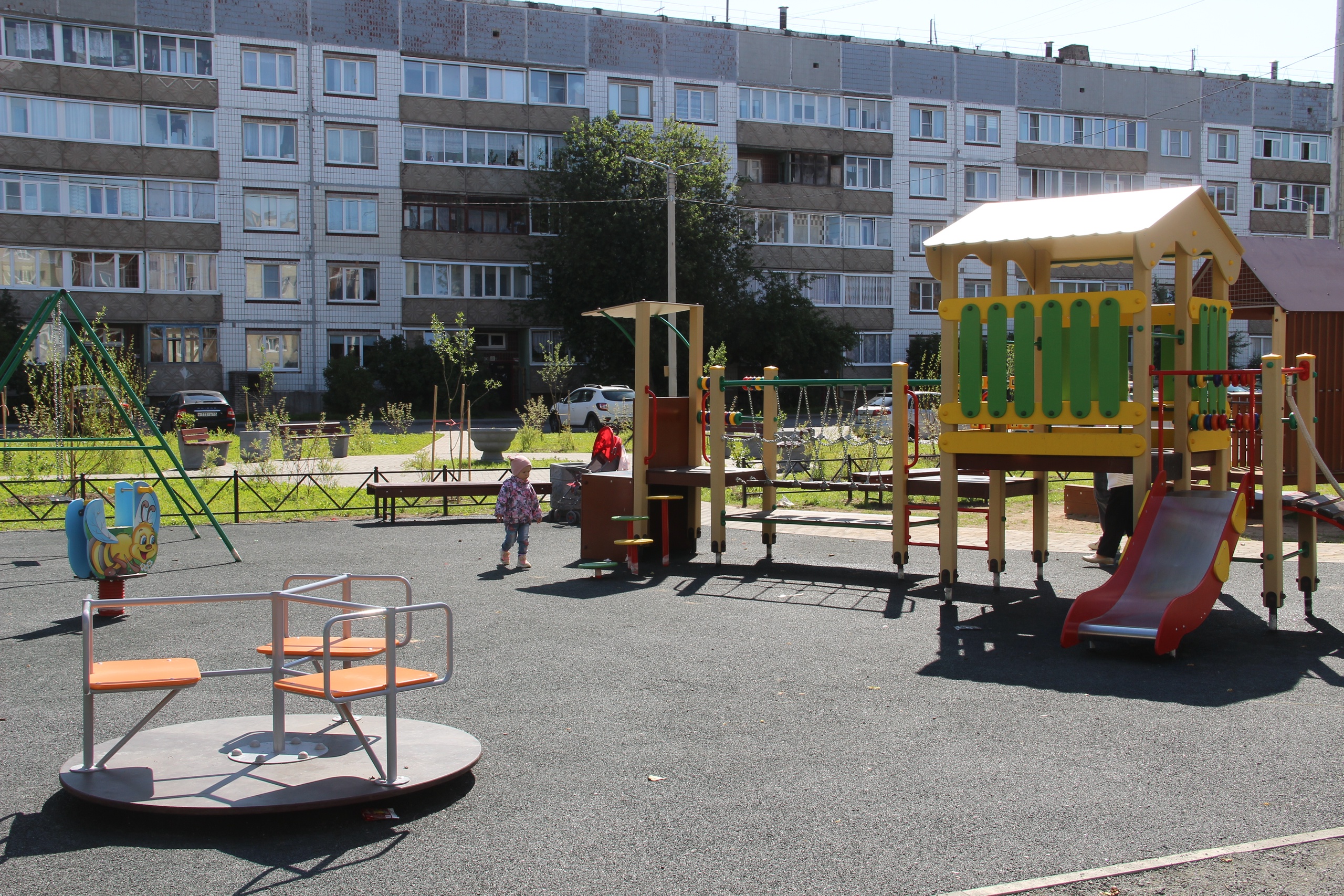 Произведено устройство двух детских спортивно-игровых площадок, оснащенных качелями, игровым комплексом, песочницей, каруселями, спортивным комплексом, баскетбольным кольцом и теннисными столами. Устройство дорожек и площадки отдыха для взрослых со скамейками и вазоном. Выполнено озеленение территории: устройство газона, посадка деревьев и кустарников.