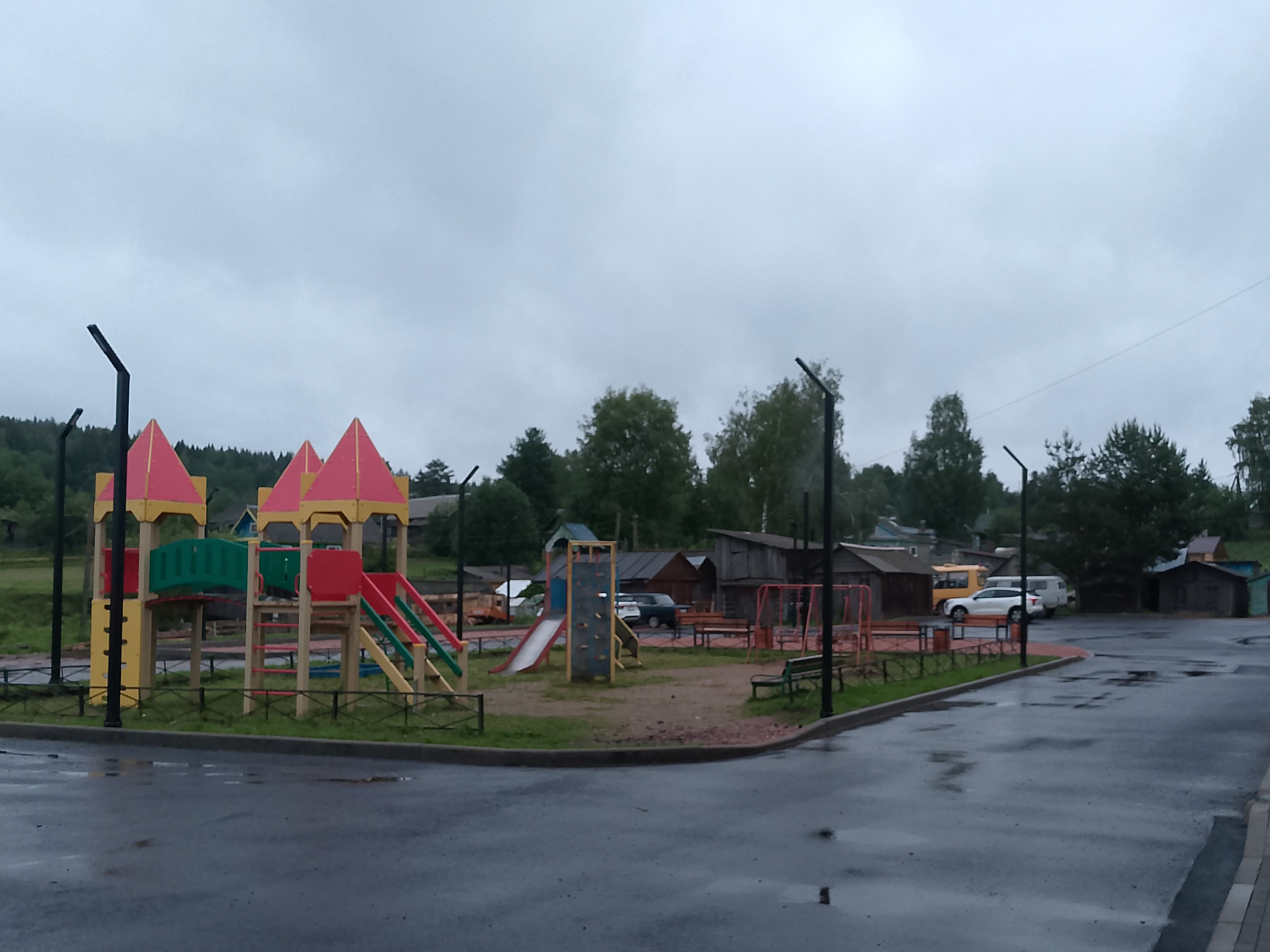 Территорию благоустроили, установив новую детскую площадку и современные спортивные тренажёры для активного отдыха. Для безопасности посетителей постелили мягкое, безопасное покрытие под игровыми и спортивными зонами. Также высадили зеленые кустарники, созданные уютные и приятные для прогулок зеленые насаждения. Всё это сделало территорию более комфортной и привлекательной для семей и отдыхающих.