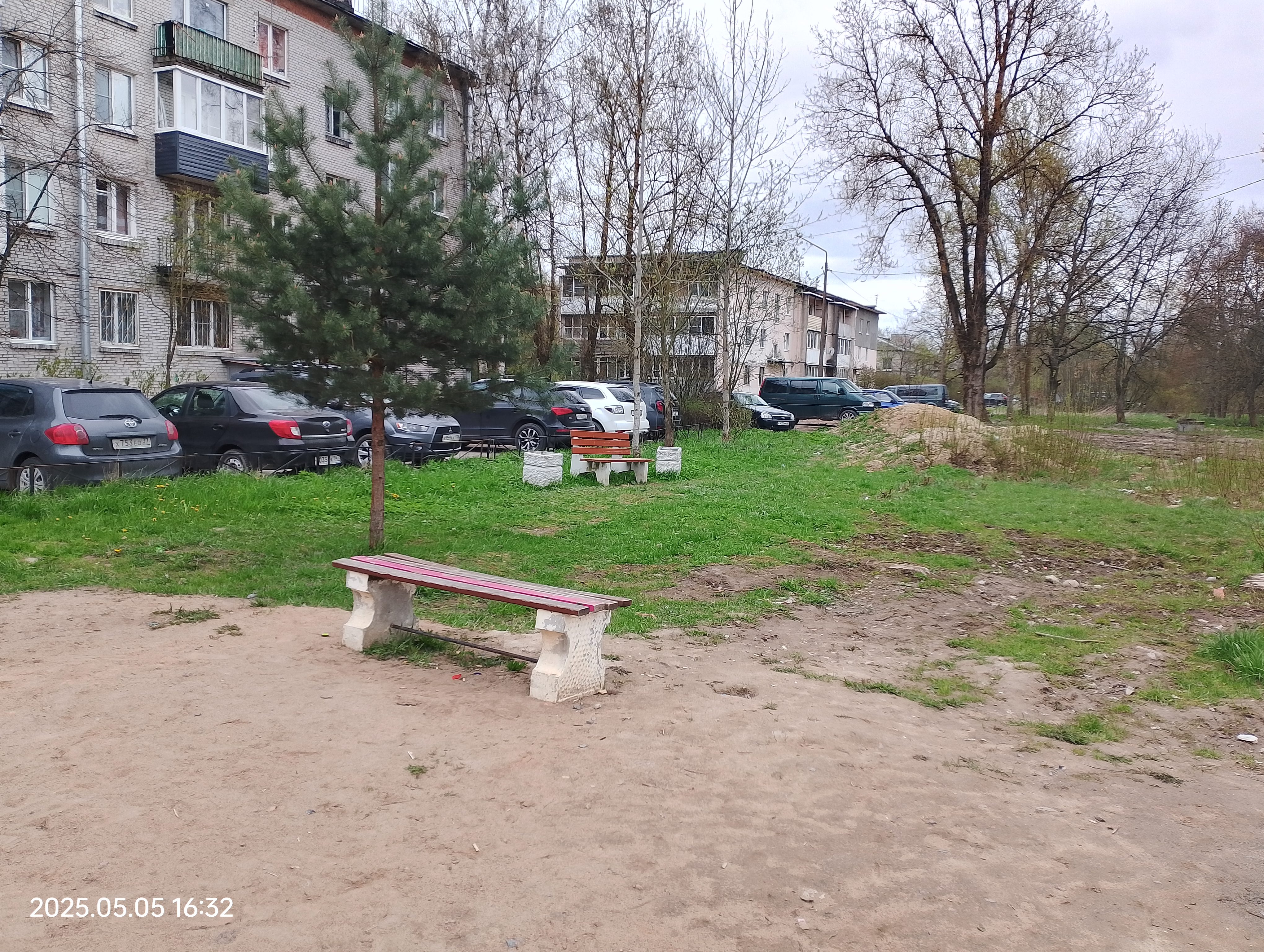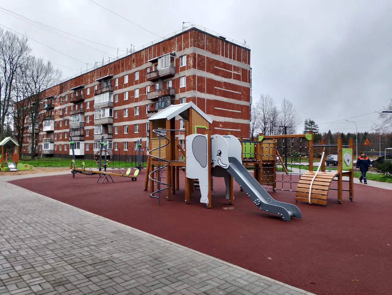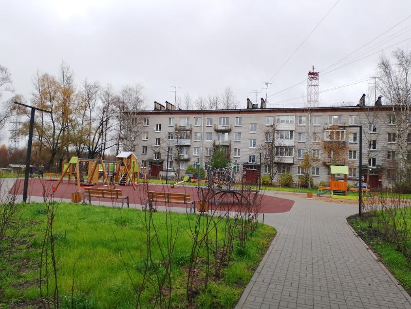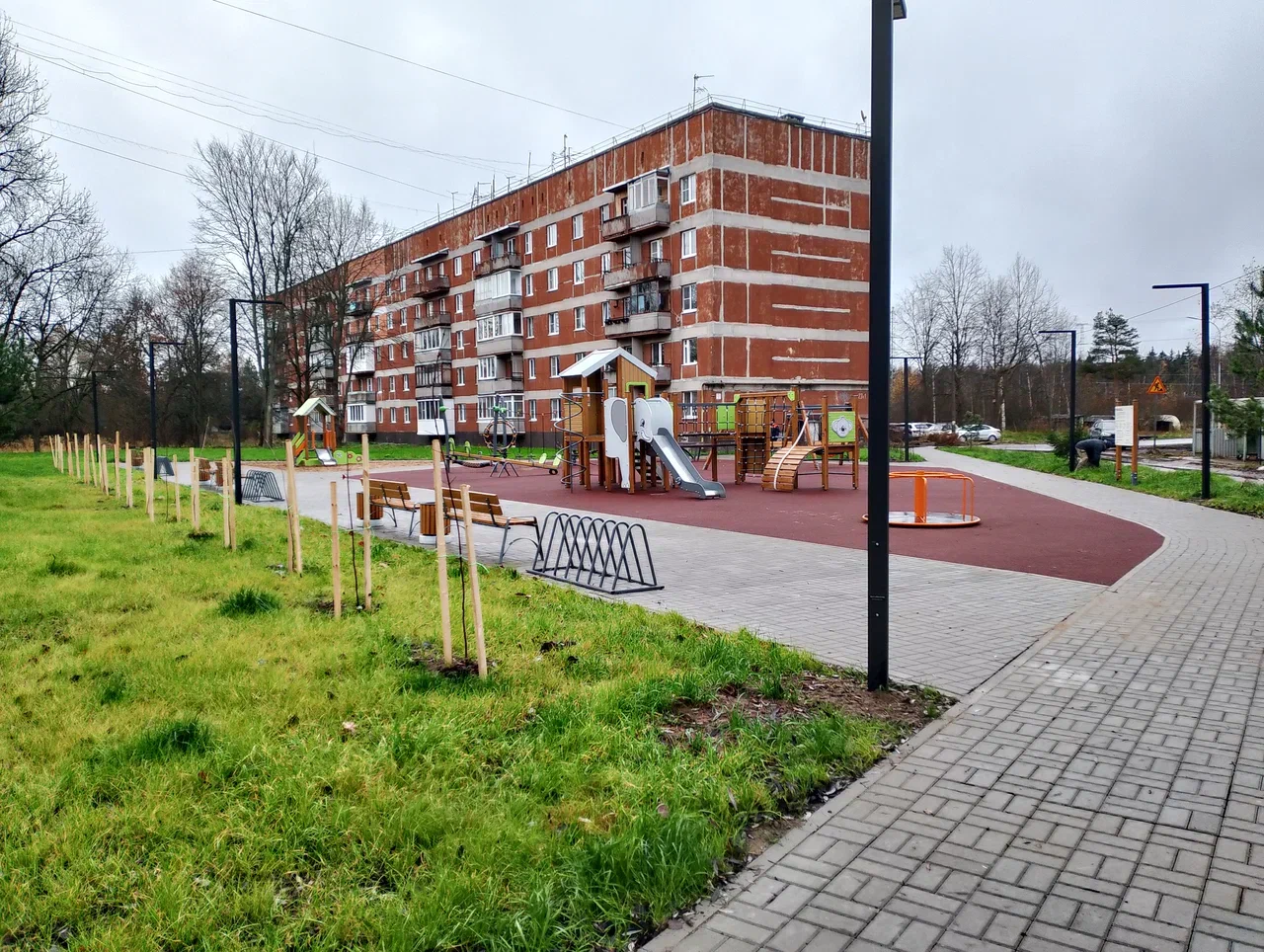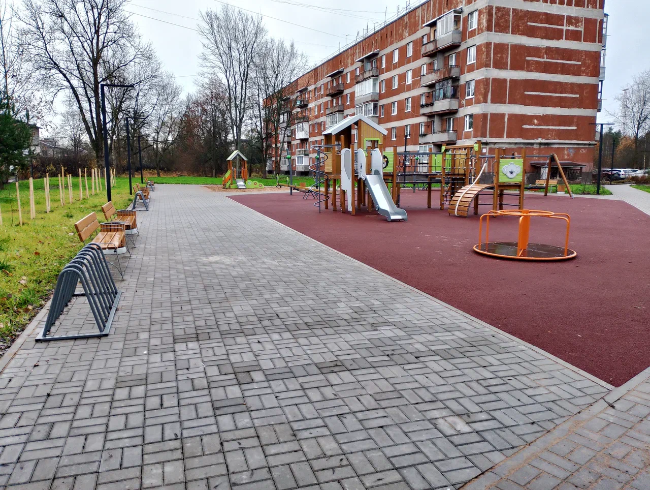 На территории было обустроено новое дворое пространство: установлено новое детское оборудование, появилось новое покрытие, высажены молодые деревья