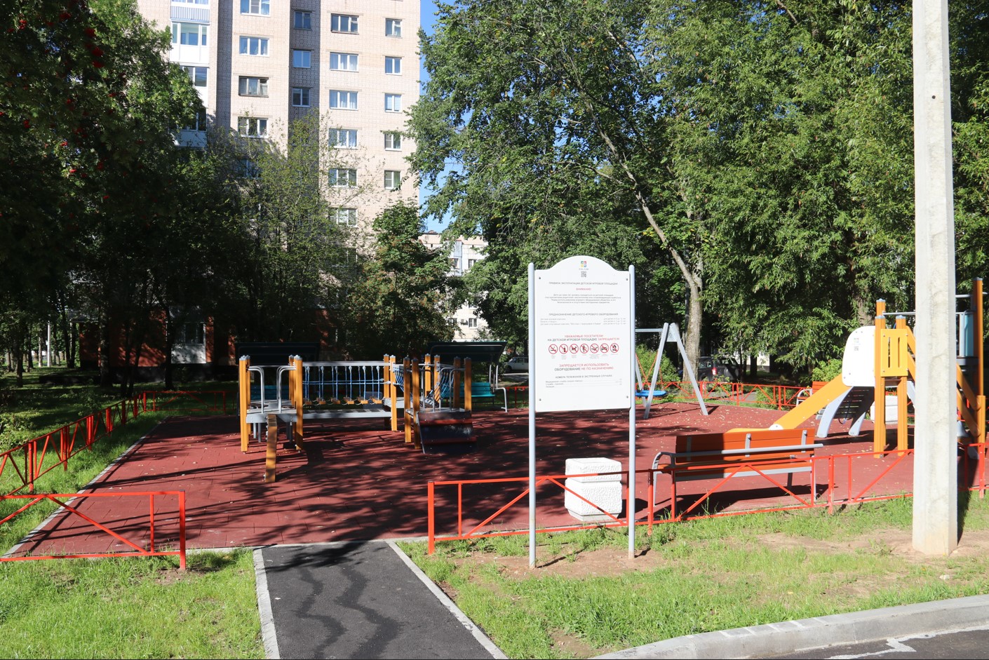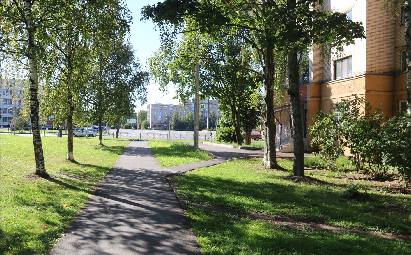 Благоустройство дворового проезда и подхода к многоквартирному дому предполагает укладку асфальтобетонного покрытия и установку бортового камня. Обустройство пешеходных дорожек планируется выполнить из асфальтобетонного материала. Освещение дворовой территории будет обеспечено путем установки новых опор освещения, с использованием современных энергосберегающих светильников. На придомовой территории предполагается установить скамейки со спинками, отвечающие требованиям комфорта и безопасности. Возле скамеек предполагается установка урн для мусора, что позволит обеспечить условия соблюдения санитарных норм и правил. Детская площадка площадью 225 м2 для детей от 3-х до 12 лет и зоной отдыха с установкой скамеек со спинками, отвечающим требованиям комфорта и безопасности. Покрытие площадки планируется выполнить травмобезопасным резиновым материалом. На игровой площадке предполагается установить детский игровой комплекс, детский спортивный комплекс «Мостики с переправой и бумом», качели "Гнездо", диван садово-парковый, качели-диван ,урны и газонное ограждение.