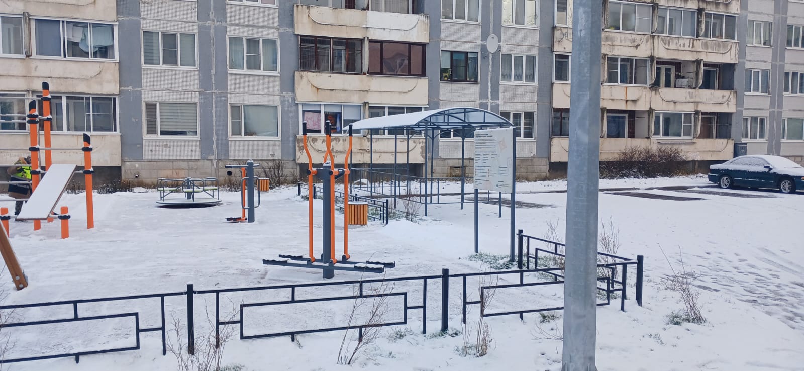На благоустроенной дворовой территории появилась новая детская площадка и современный тренажерный комплекс, где дети и взрослые смогут активно проводить время. Также была построена удобная парковочная площадка, а устаревшие скамейки заменены на современные и комфортабельные, создавая пространство для отдыха. Эти изменения сделали двор более уютным и привлекательным для всех жителей.