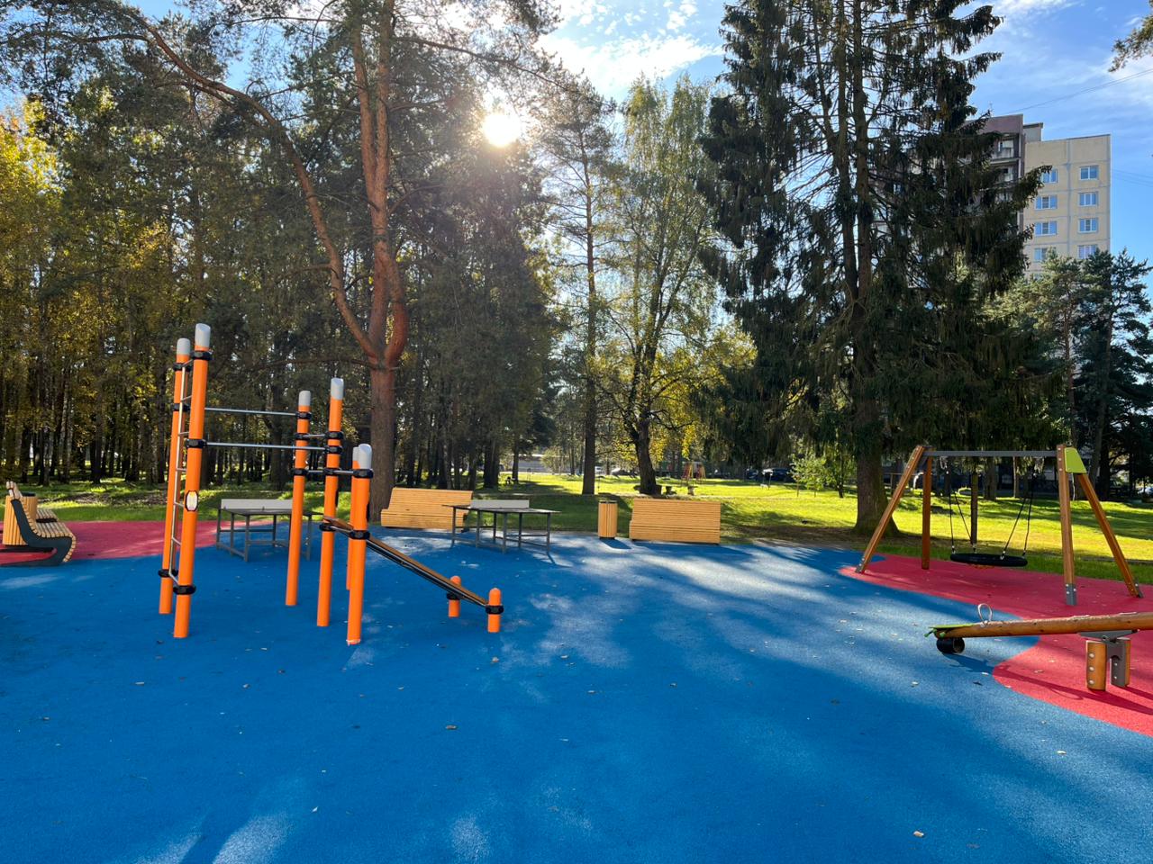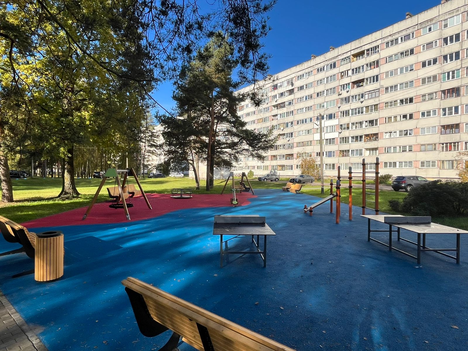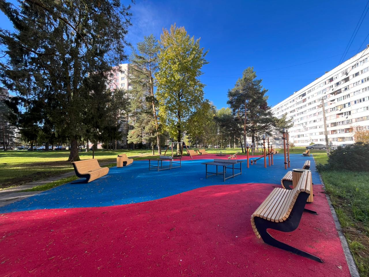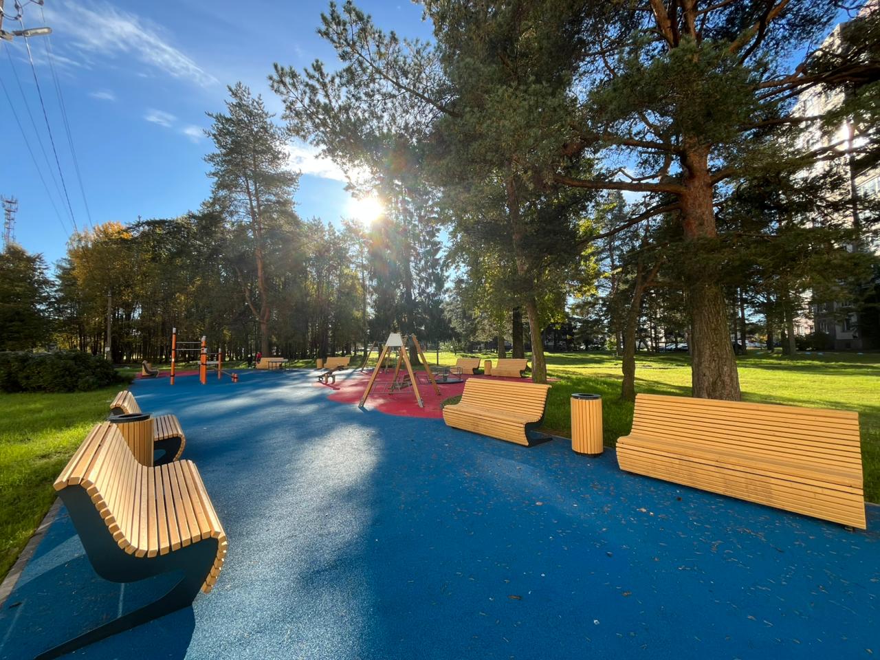 Обустройство площадки для отдыха со спортивным и игровым оборудованием, пешеходных дорожек, скамеек, урн, озеленения и освещения