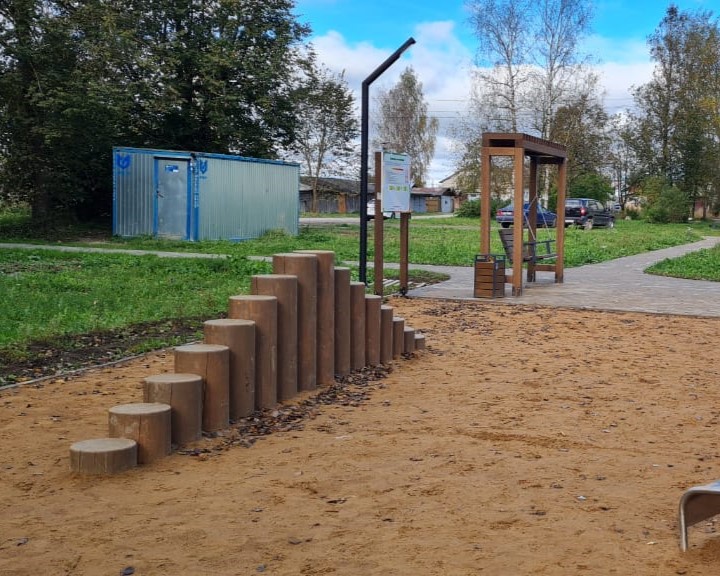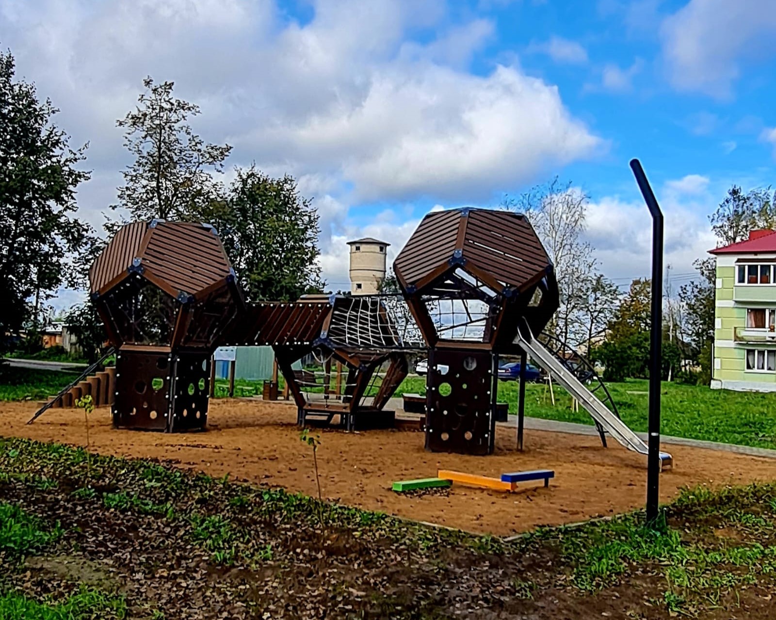 В Калитино была установлена новая современная детская площадка, которая имеет форму многогранников. Также были установлены качели для комфортного отдыха.
