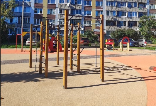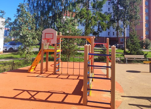 Территория преобразилась благодаря установке нового детского оборудования, которое радует глаз и вдохновляет на игры. Резиновое покрытие завершает композицию, обеспечивая безопасность и комфорт для наших детей.