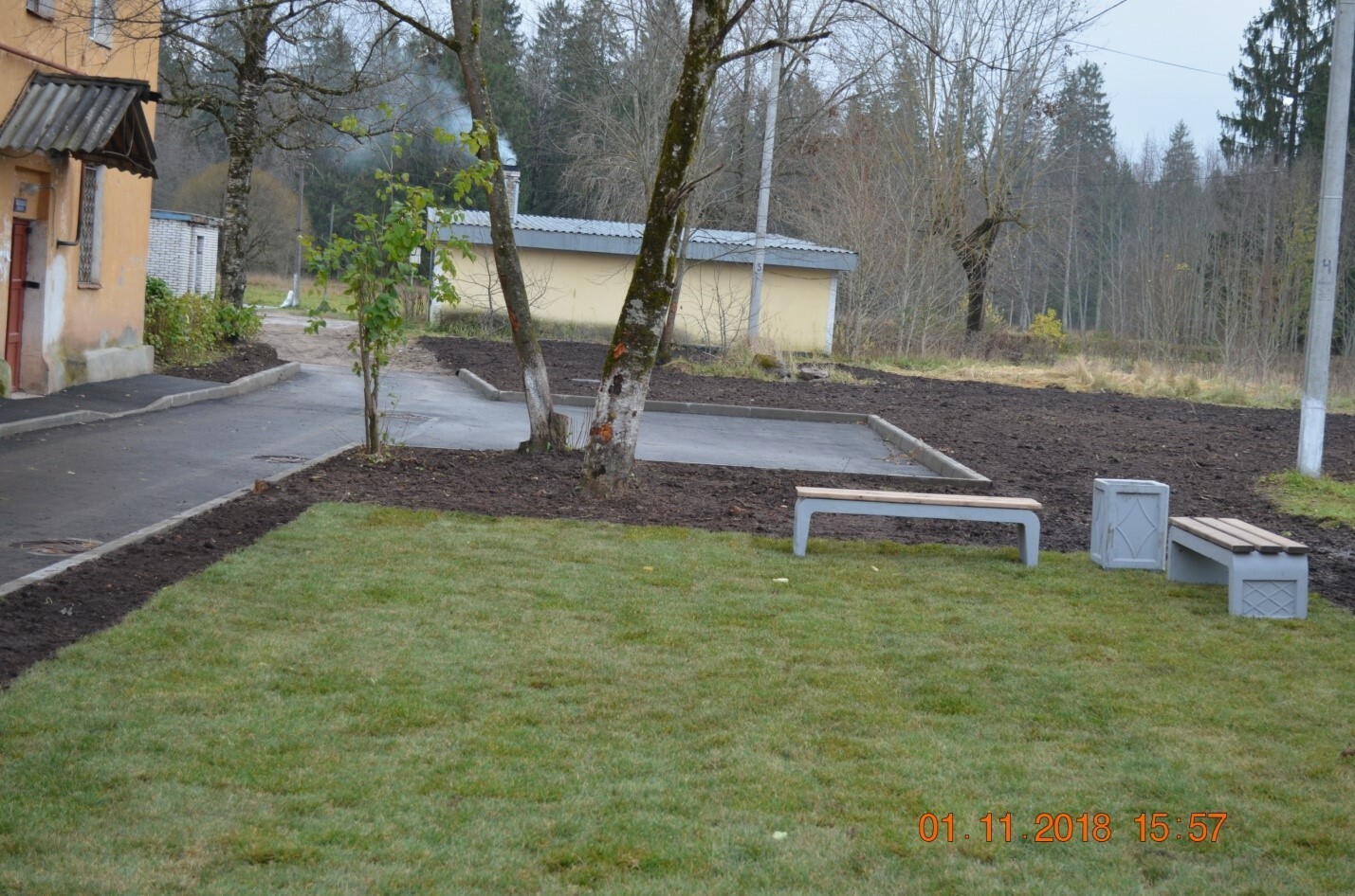 -установлены малые архитектурные формы (скамейки, урны),