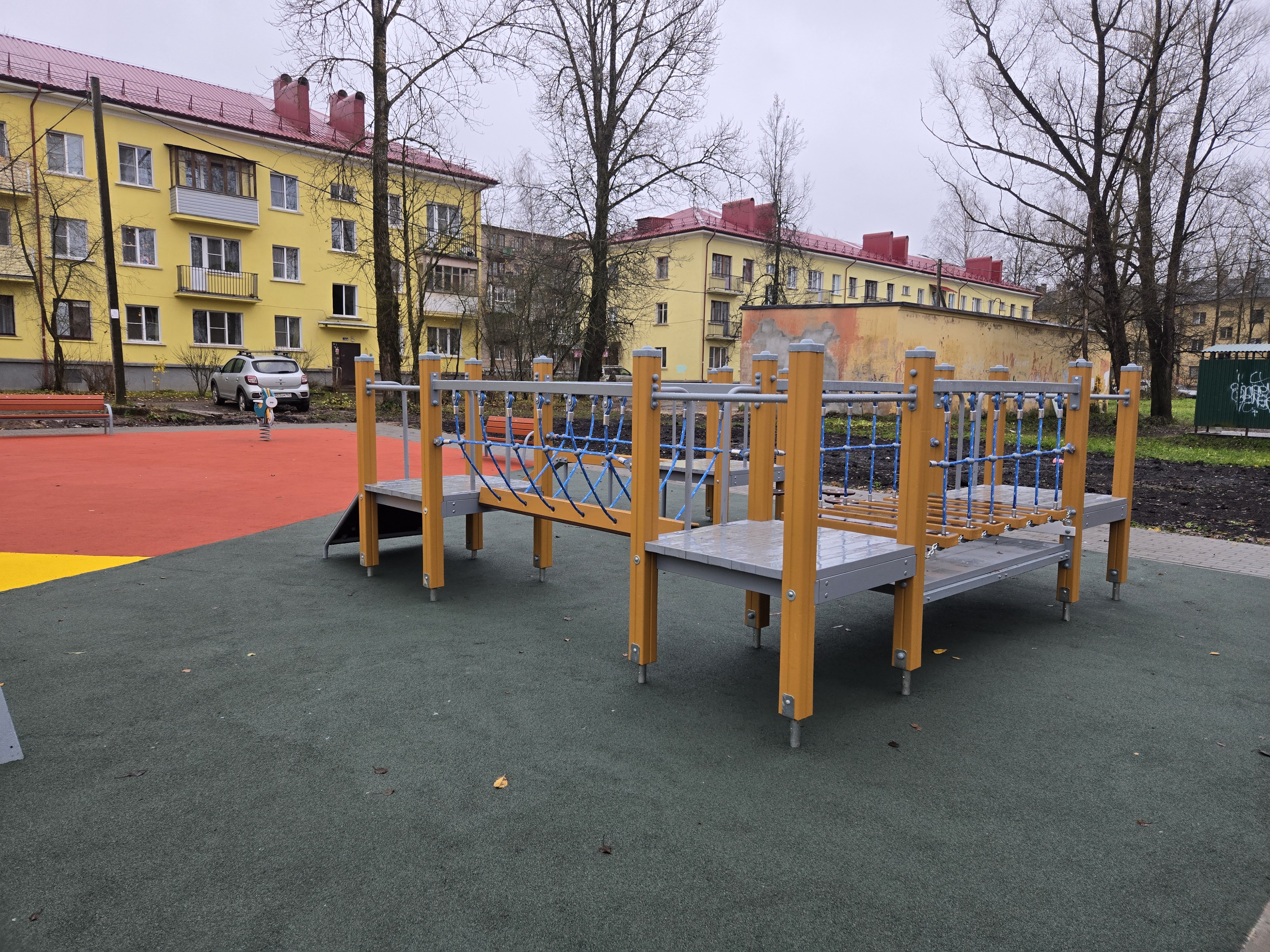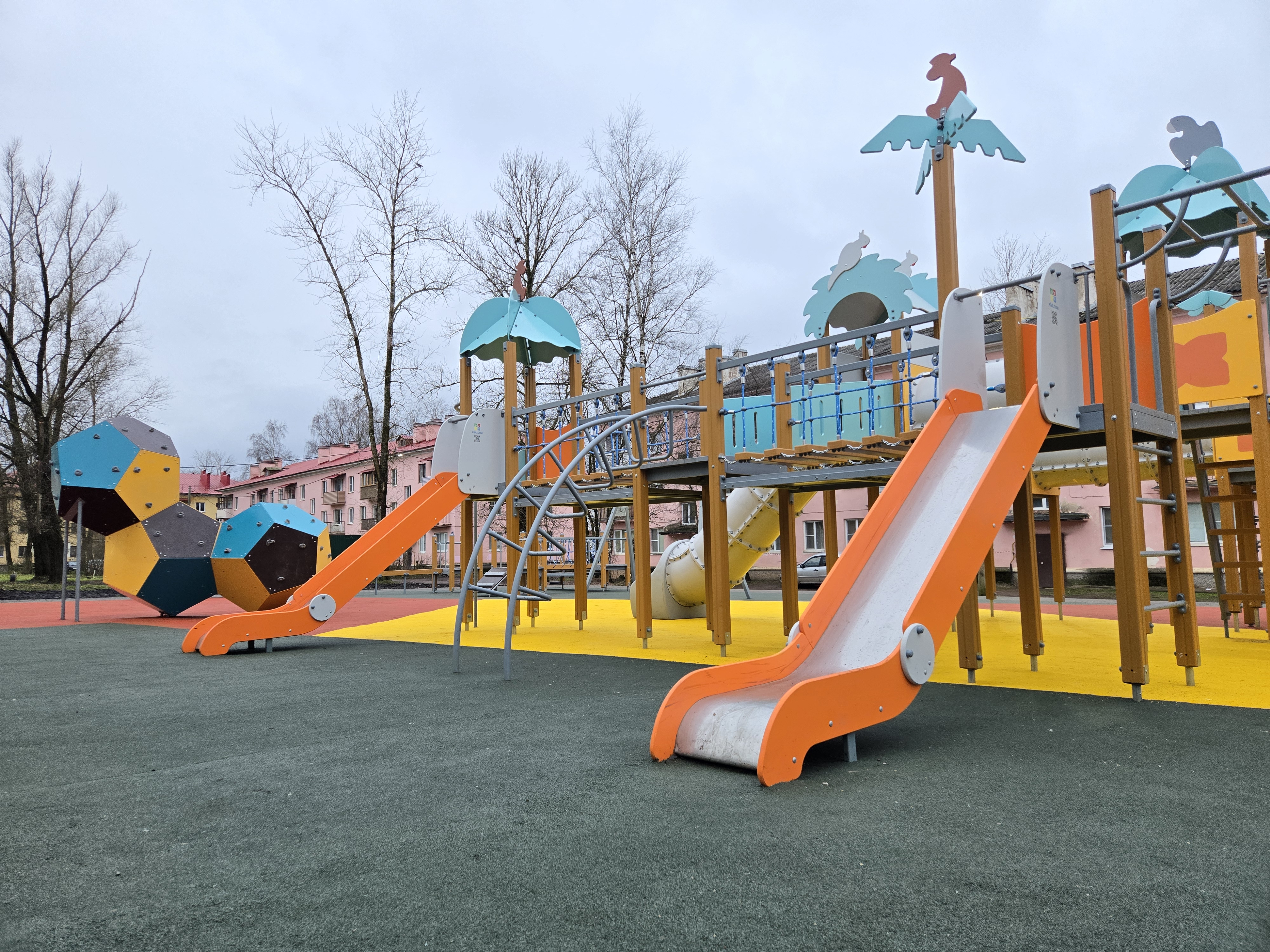 В Бокситогорске появилось современное и безопасное игровое пространство для детей, где установлены яркие горки и мини-батут, встроенные в мягкое прорезиненное покрытие. Этот уютный и комфортный уголок приглашает малышей радоваться играм и активному отдыху на свежем воздухе.