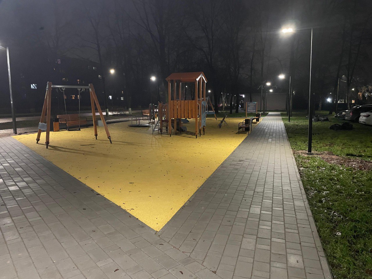На территории по адресу Гагарина 9 обновили игровое оборудование - теперь здесь расположился яркий детский городок и качели, создавая вдохновляющее пространство для малышей. Безопасное резиновое покрытие и новое освещение делают зону еще более комфортной и привлекательной для семейного отдыха и весёлых игр.