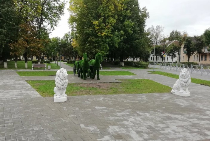 На территории установлены новые арт-объекты, такие как львы, сердце и повозка с лошадьми, которые украшают пространство и придают ему особый шарм. Для комфортного отдыха посетителей предусмотрены скамьи, расположенные в удобных и приятных местах.