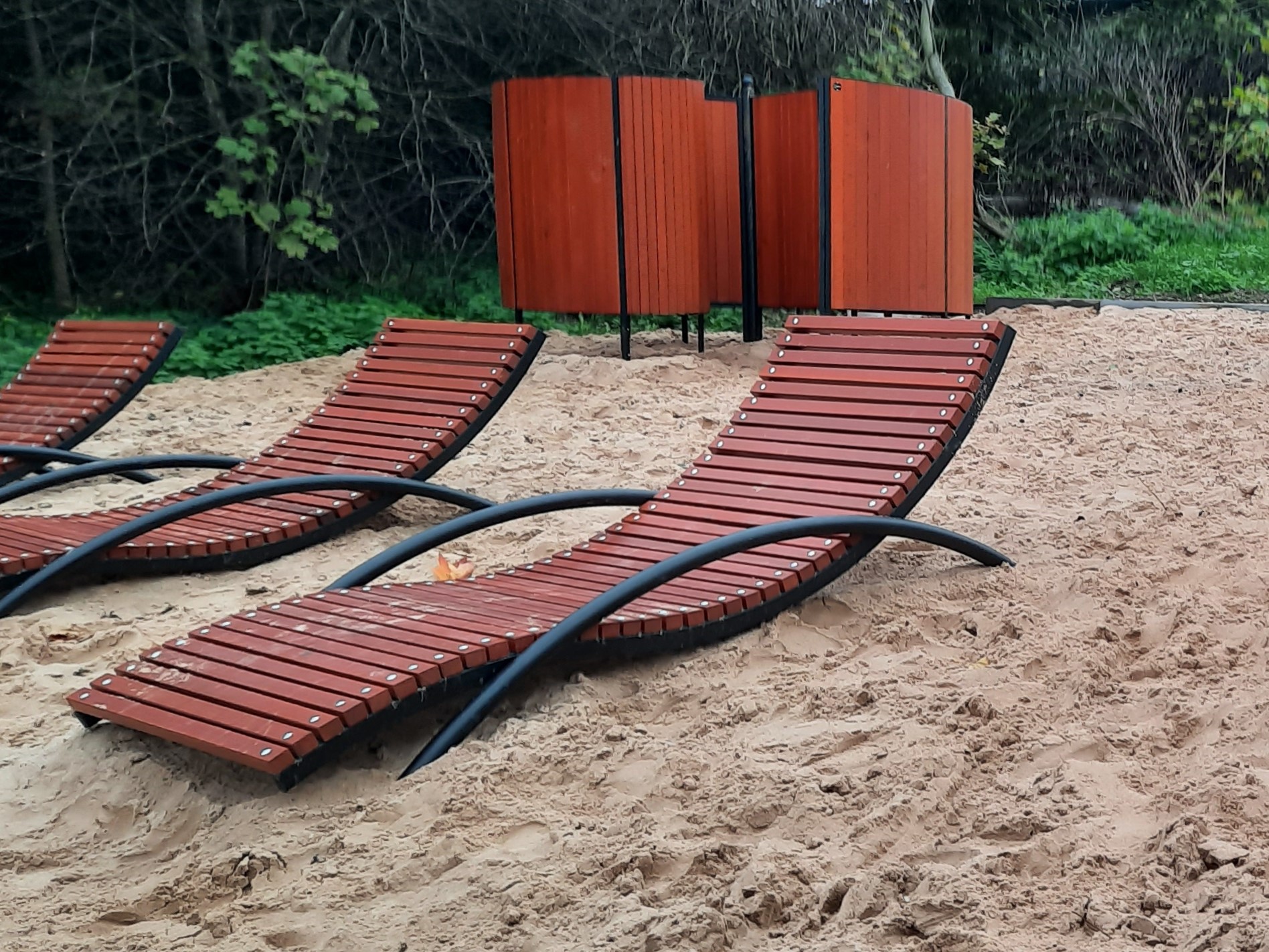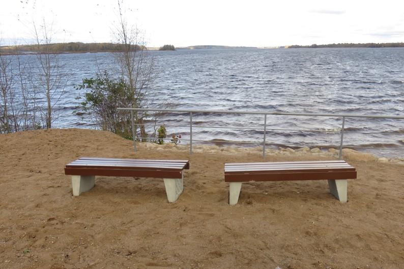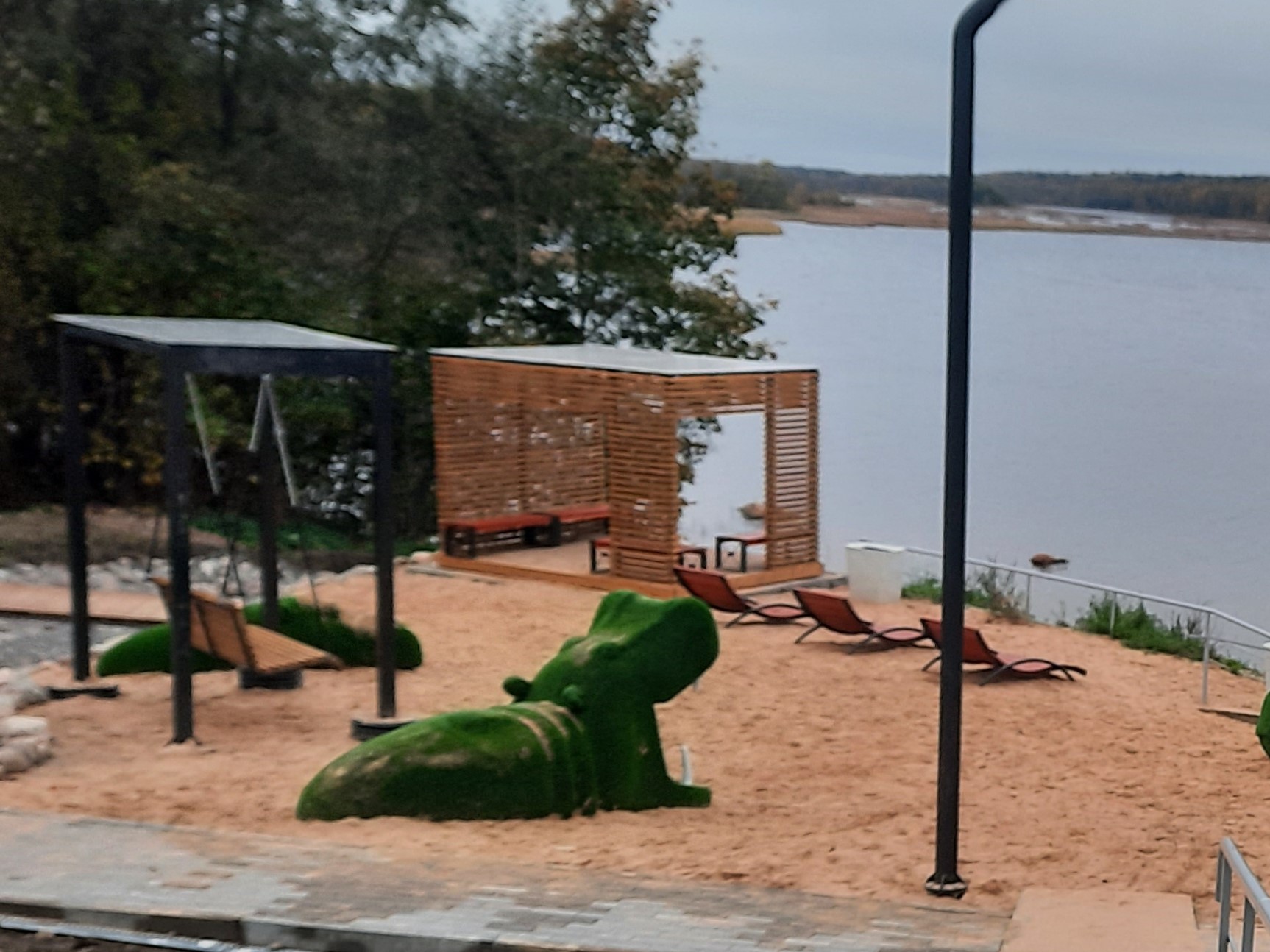 На территории установлены парковые лежаки, оборудована зона барбекю, оборудована беседка с удобными скамейками, размещены урны и пляжные раздевалки. Также предусмотрена велопарковка.