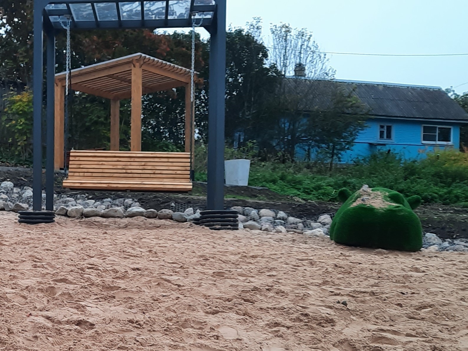 Кроме того, на территории установлены малые архитектурные формы в виде топиариев, водоотводная канава и лотки, установлено видеонаблюдение, а также фонарные столбы. Территория была озеленена.
