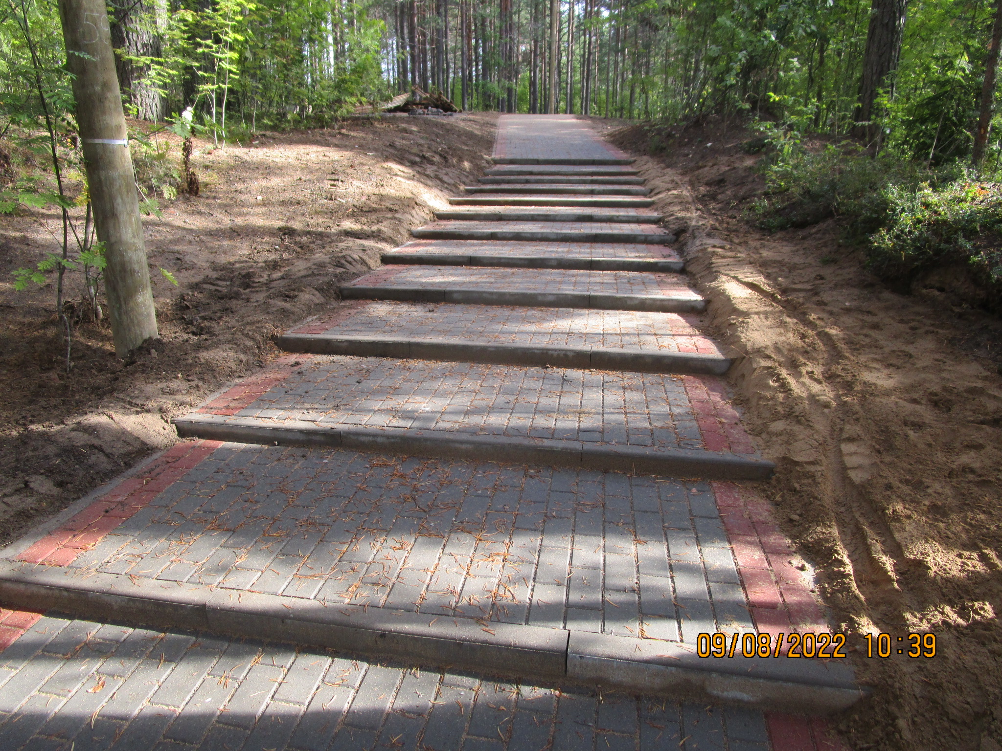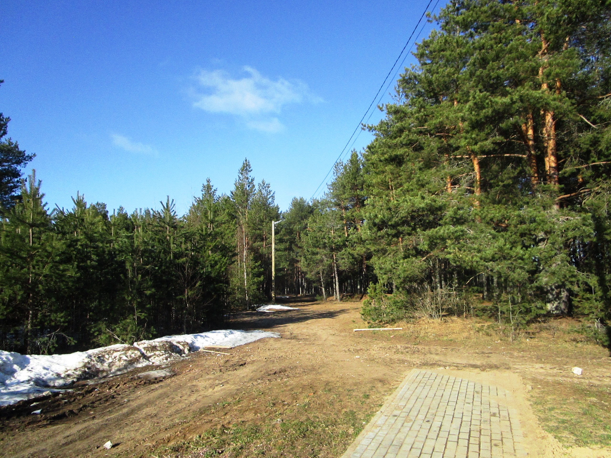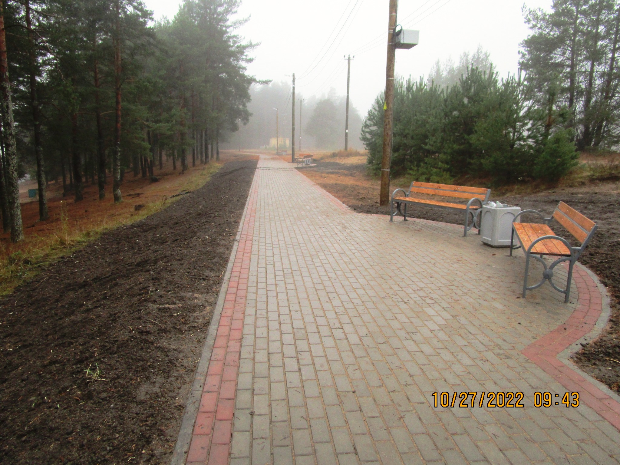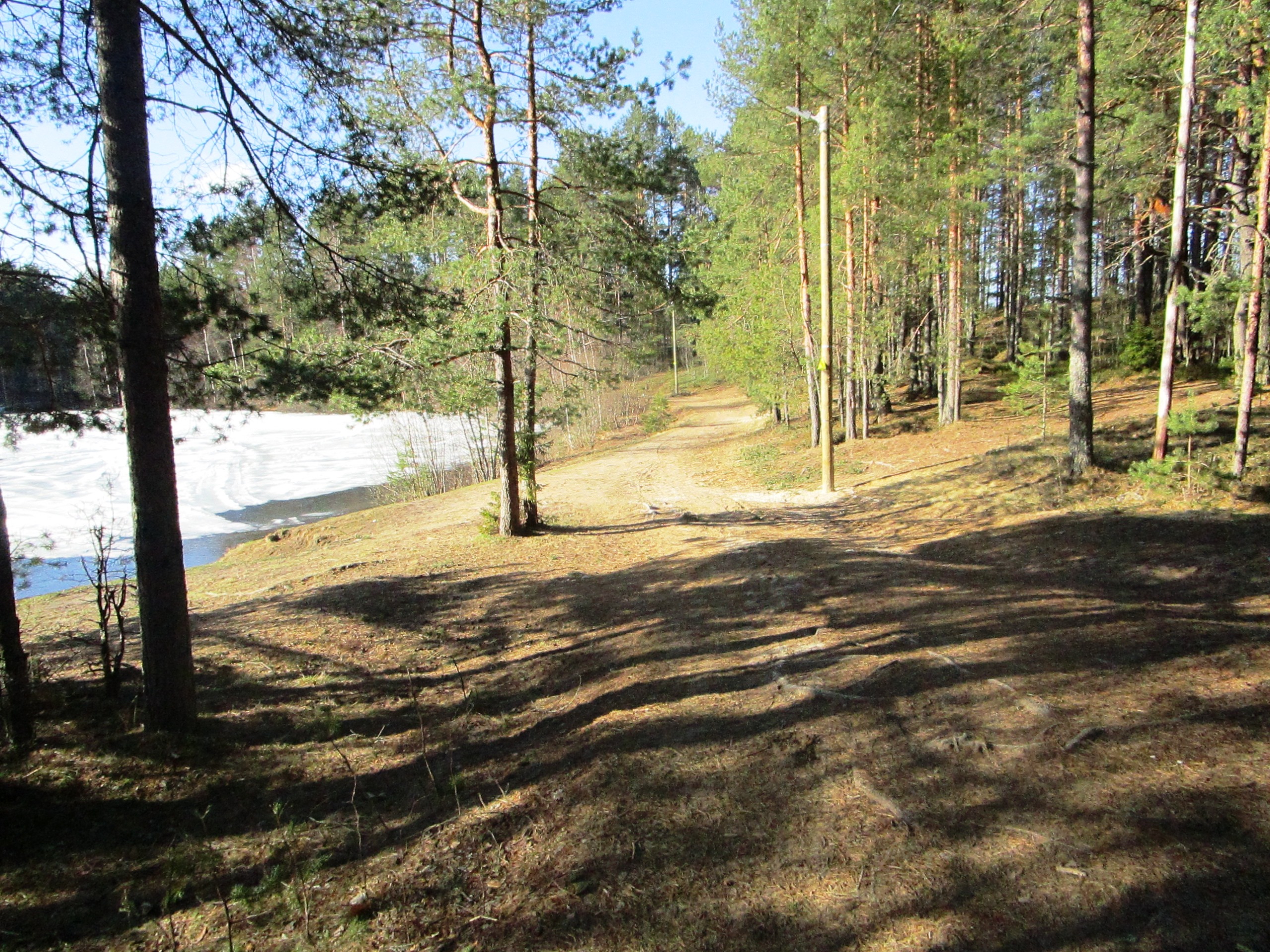 На данном этапе работ реализованы работы по устройству подъездных путей к озеру и устройство организованной парковки для автотранспорта с тротуаром
