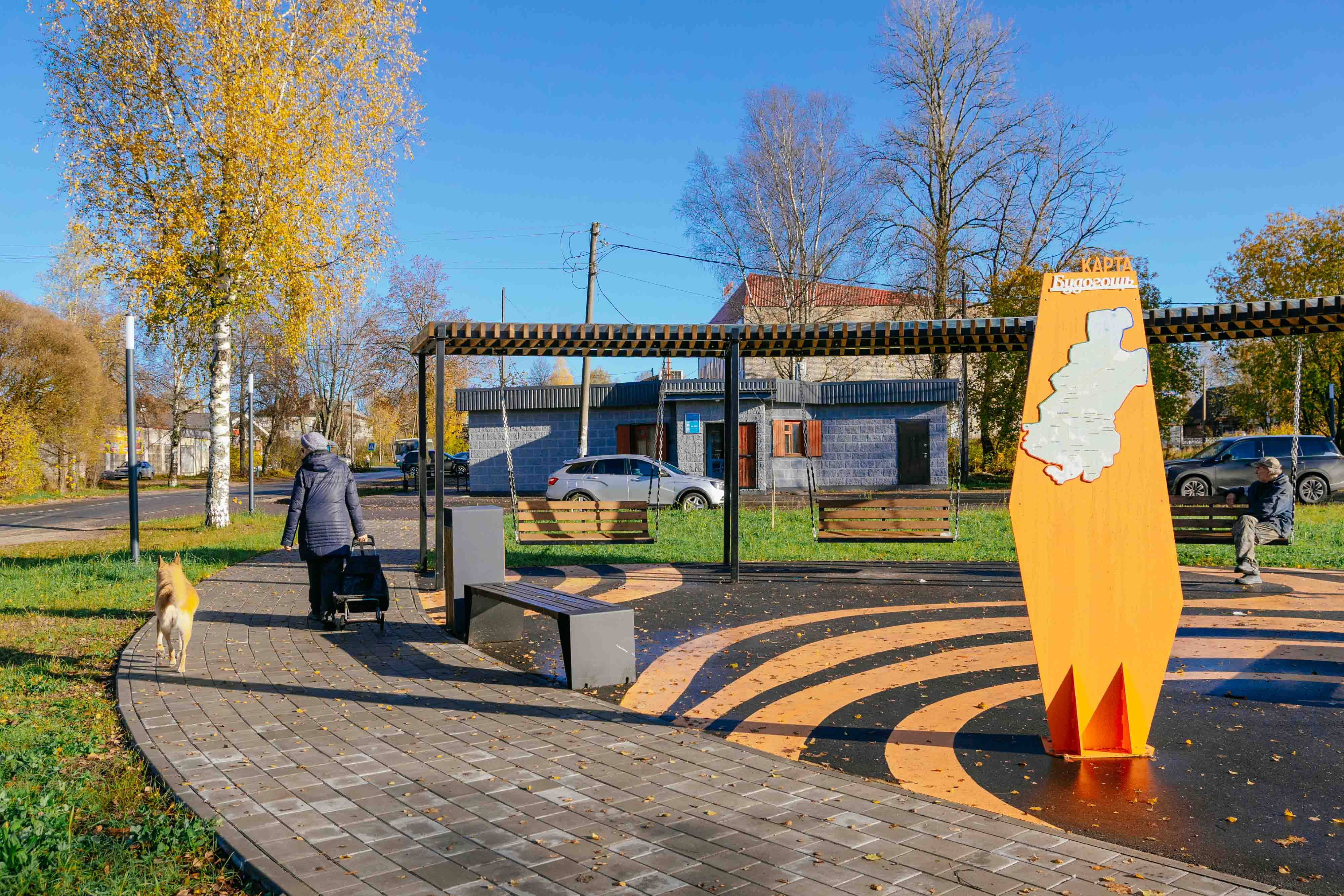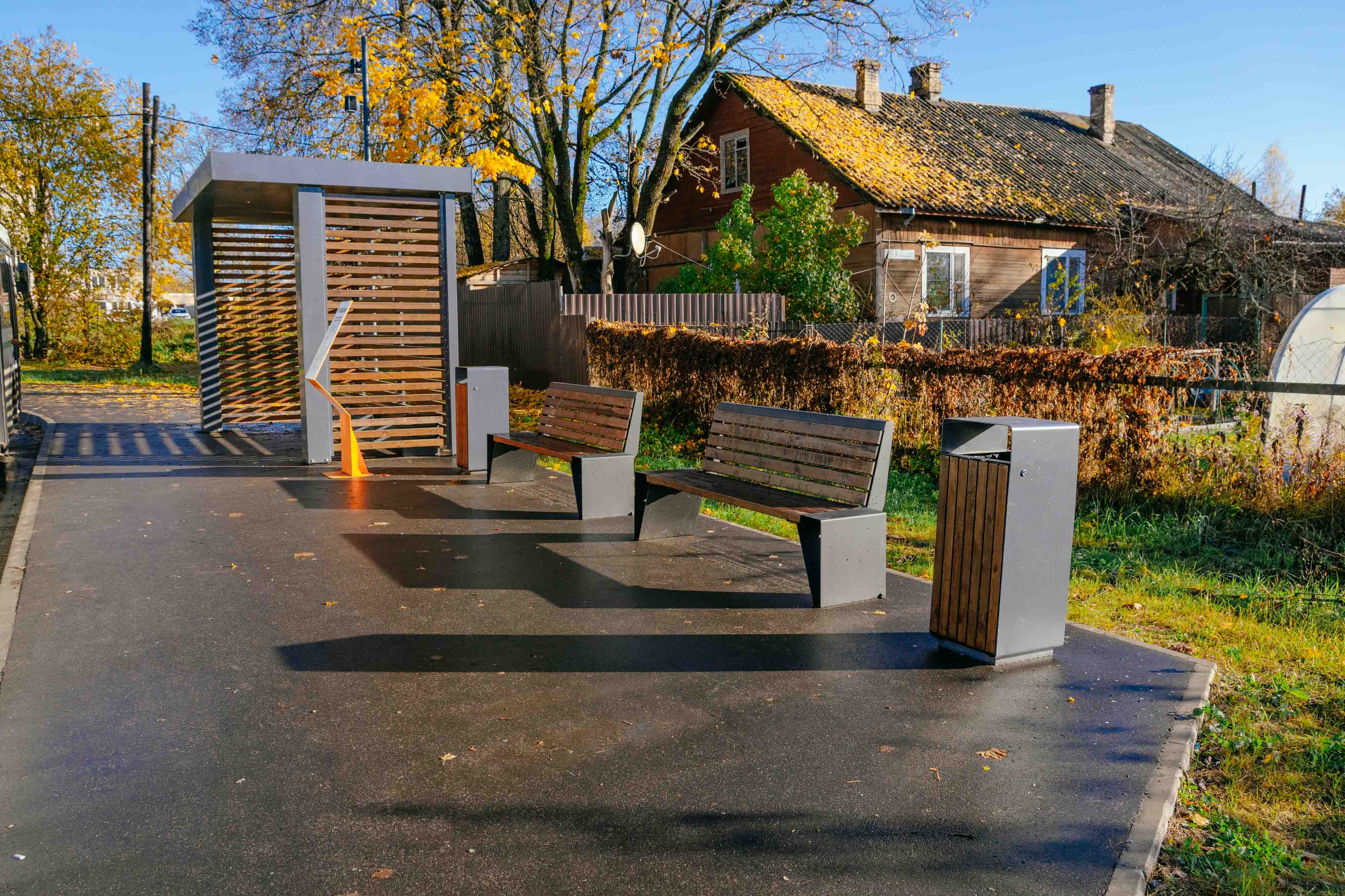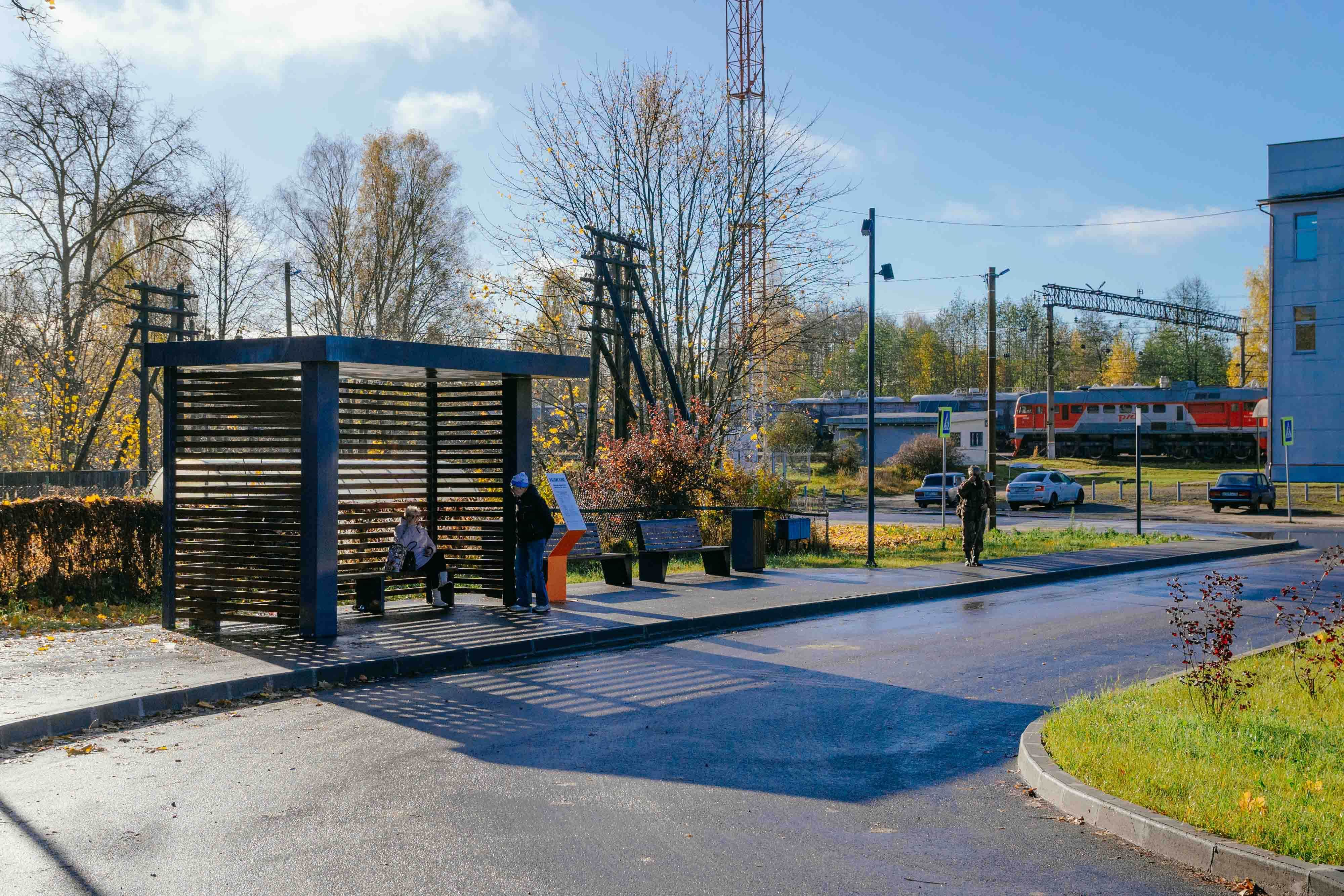 На новой территории расположились места отдыха и ожидания общественного транспорта. Созданы «пешеходные ворота» в поселок и благоустроена автобусная станция. На месте пересечения основных пешеходных транзитов располагается информационный стенд с картой Будогощского городского поселения и его историей, с другой стороны. Он станет визитной карточкой поселка и укрепит связь жителей с их местом. За картой располагается зона отдыха с качелями. На пути следования автобусов создано асфальтовое покрытие. На месте существующей остановки пригородных автобусов создана зона ожидания с комфортными местами для ожидания транспорта как под навесом, так и на открытом воздухе, а также с удобным информационным стендом с расписанием движения.