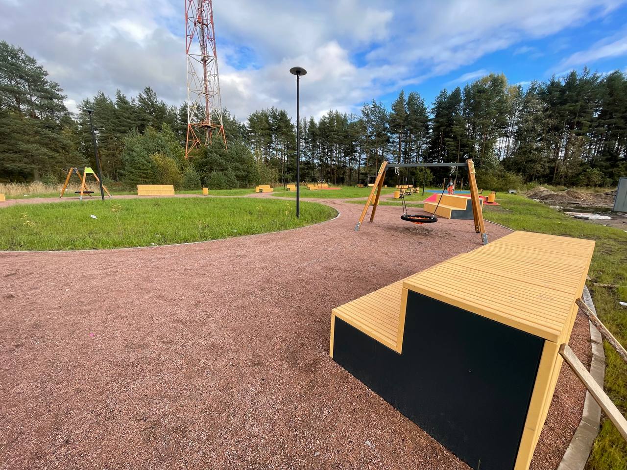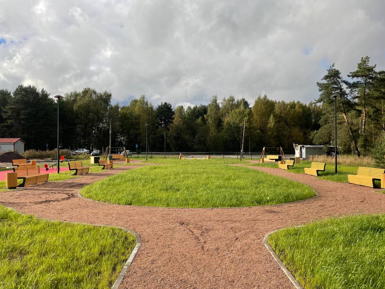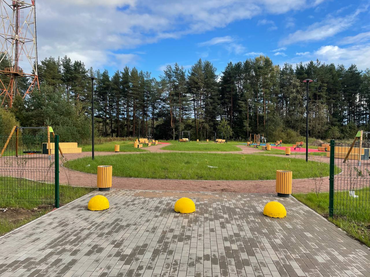 Обустройство пешеходных дорожек, спортивной и детской площадок для отдыха для разных возрастных групп, скамеек, урн, освещения и озеленения