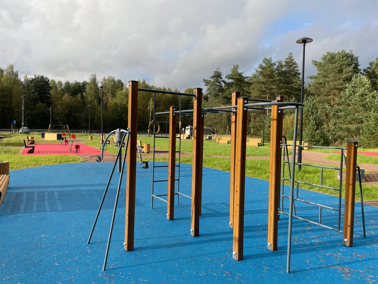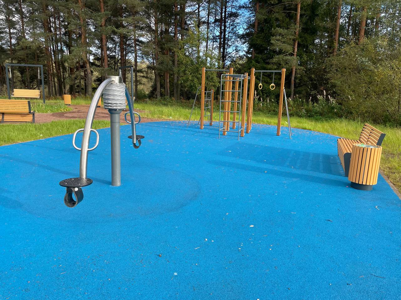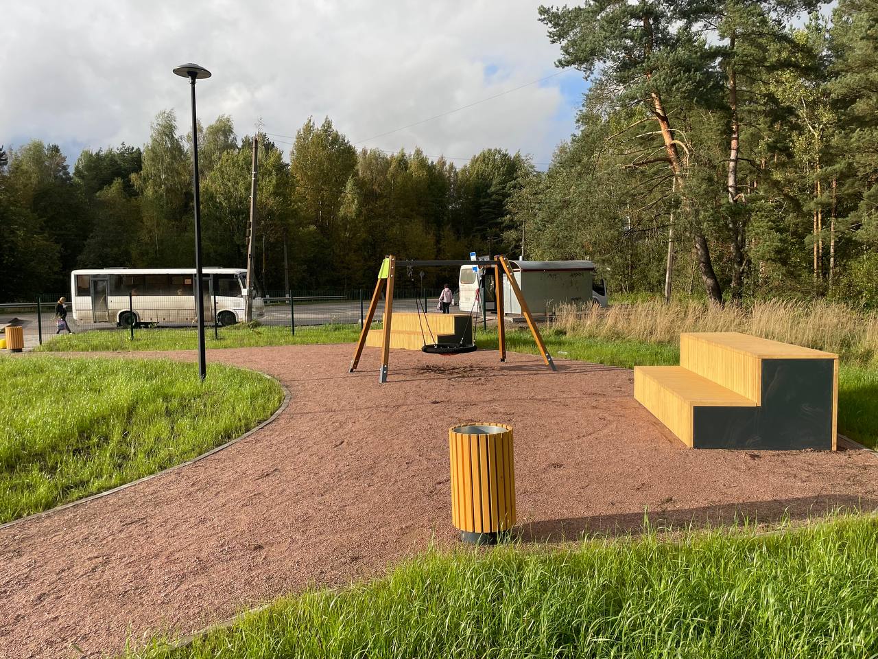 Обустройство пешеходных дорожек, спортивной и детской площадок для отдыха для разных возрастных групп, скамеек, урн, освещения и озеленения