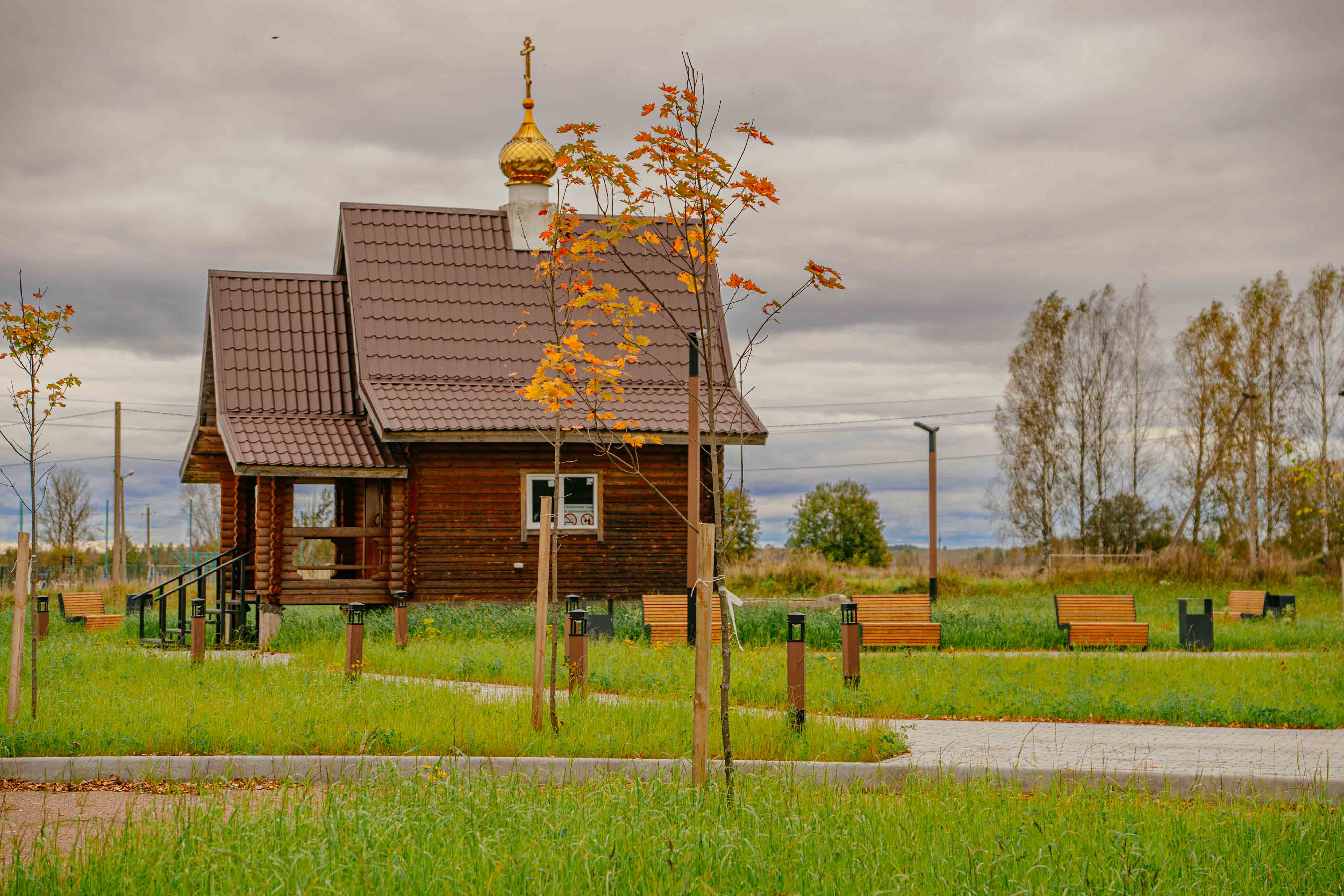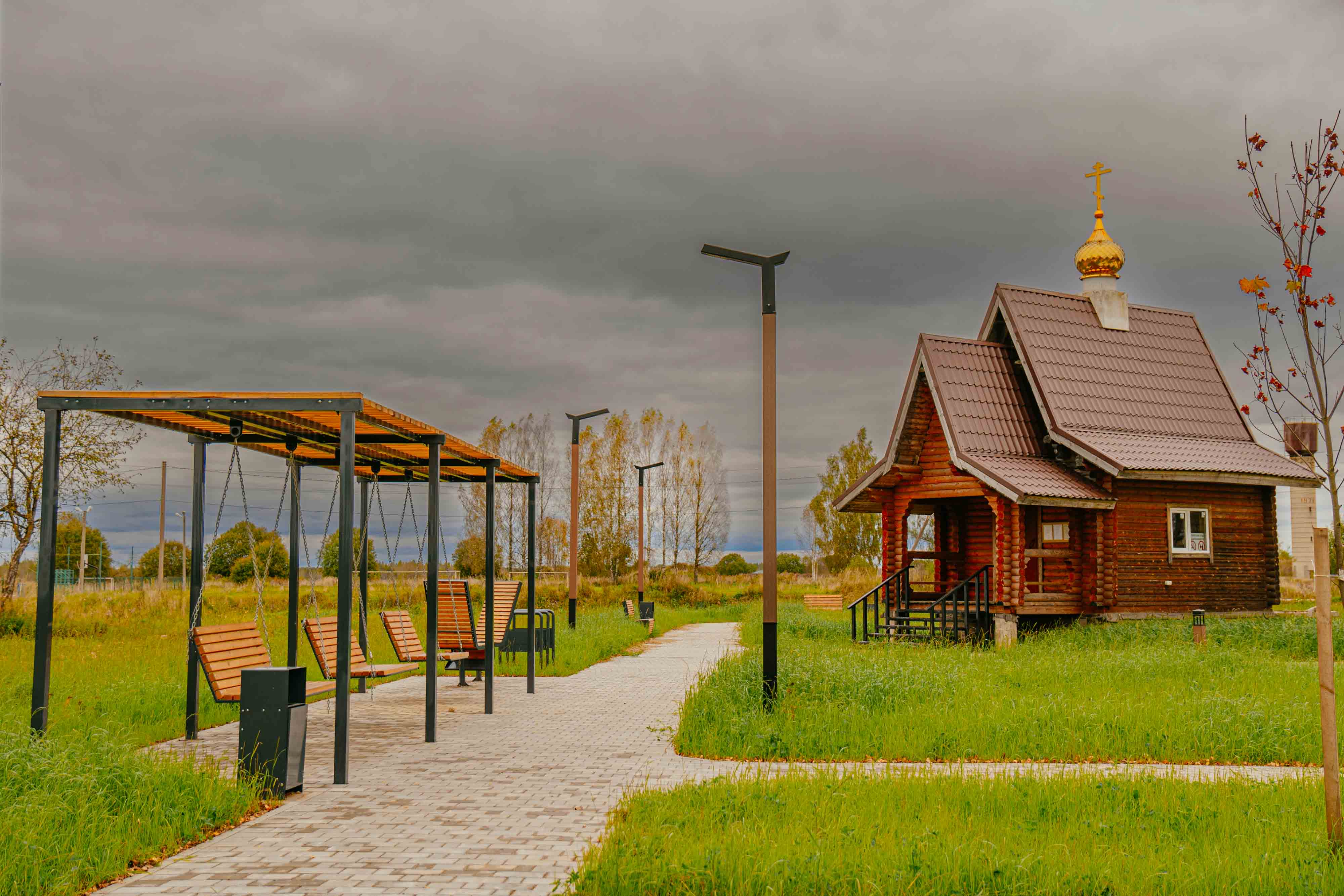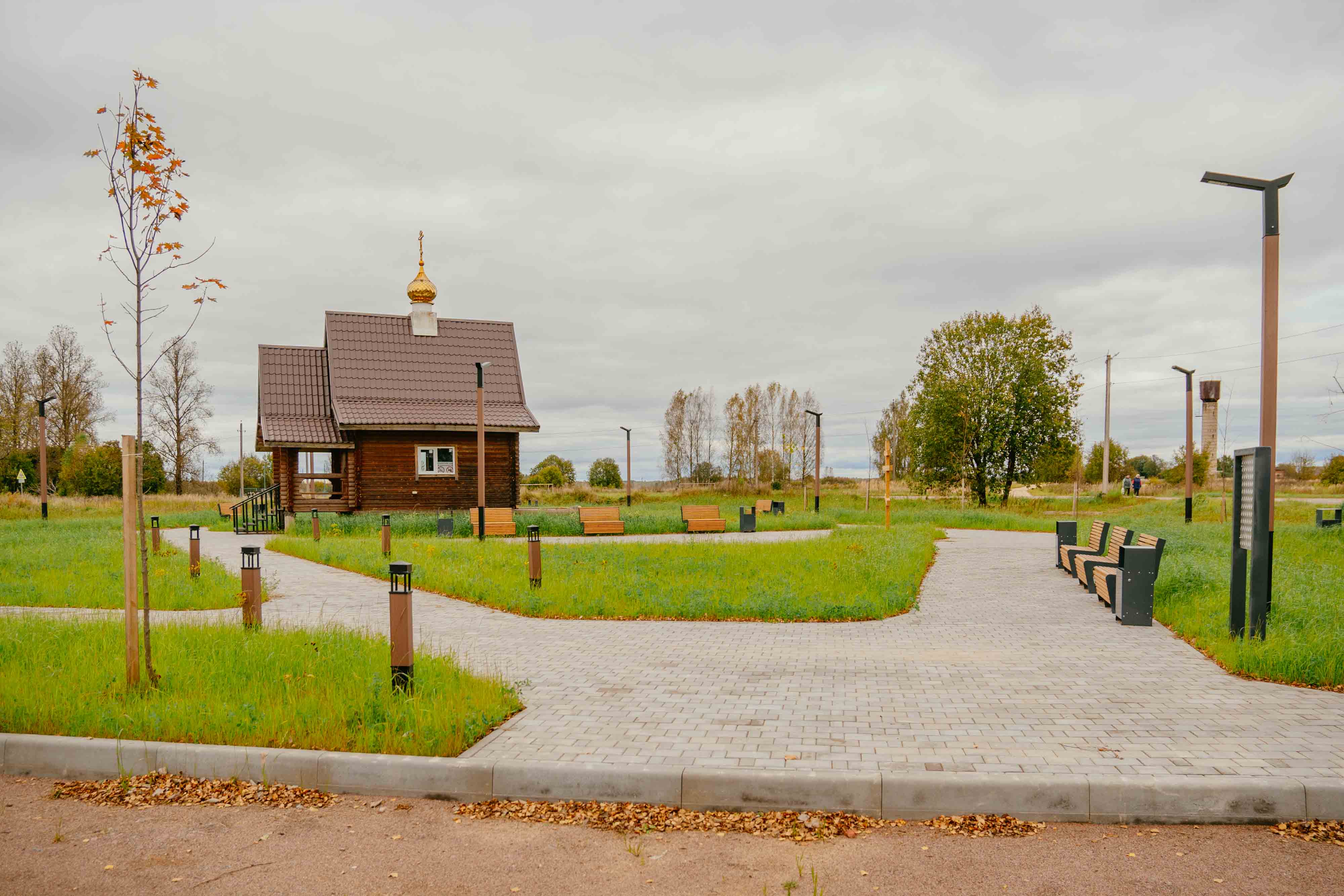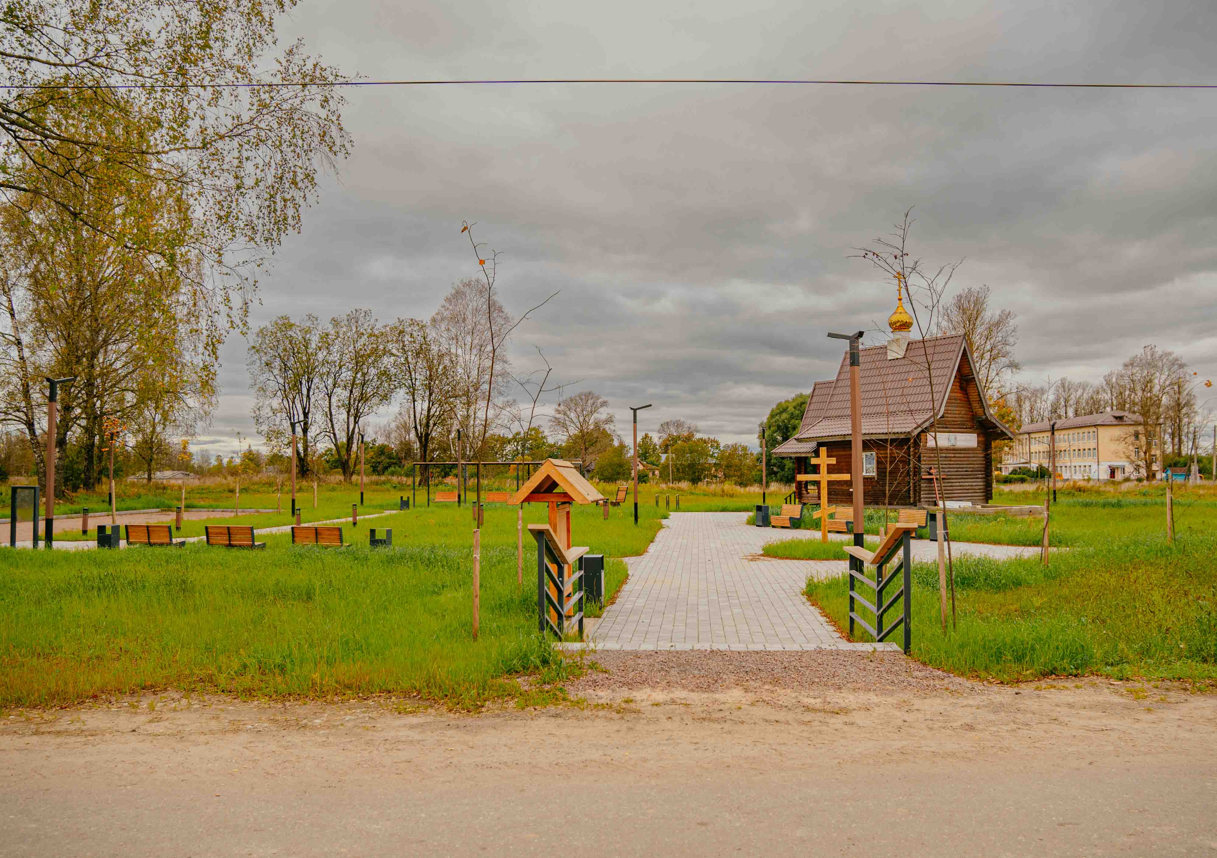 Территория у часовни представляла собой пустырь без какого-либо благоустройства. Благодаря реализации проекта выполнены такие работы как: мощение брусчаткой – парковка и пешеходная зона, озеленение – газон, кустарники, деревья. Установлены навес с качелями, скамейки, урны, велопарковка, крест, двухуровневое освещение - опоры 4,4м., столбики 1 м.