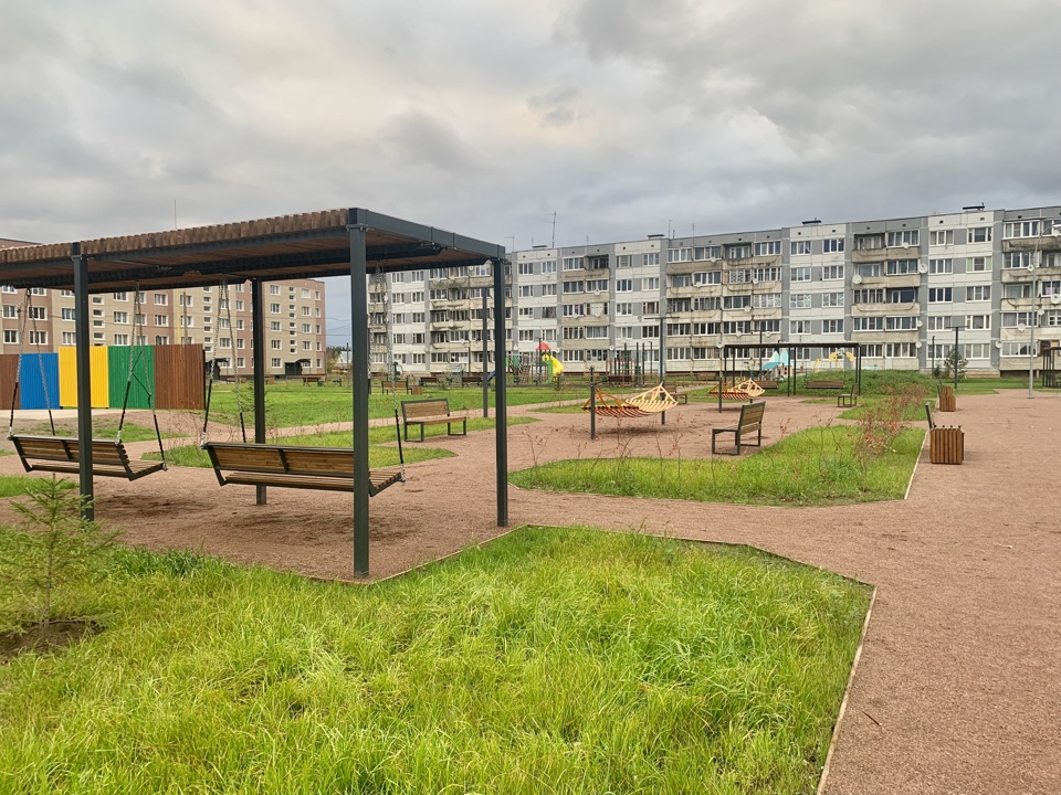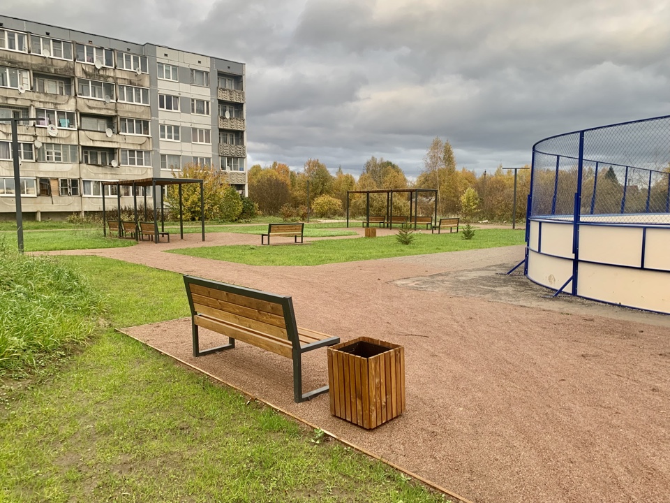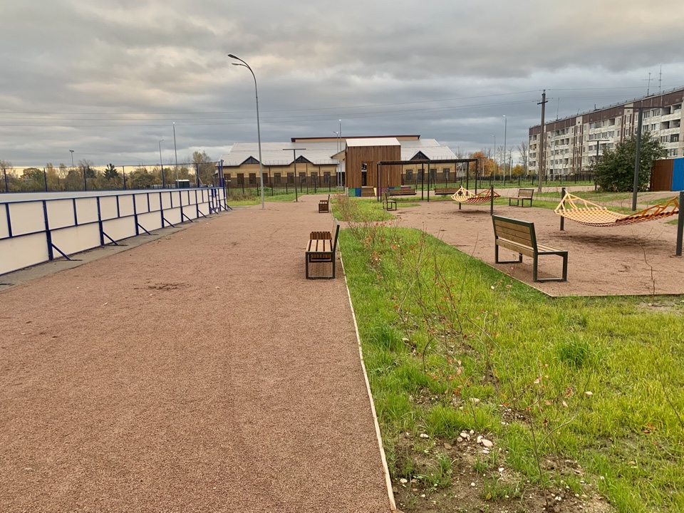 Полный адрес проекта Ленинградская область, Лужский район, п. Торковичи, ул. 2-я Гражданская Описание проекта Территория была благоустроена с учетом комфорта жителей: проложена сеть удобных пешеходных дорожек, вдоль которых установлены лавочки и урны для мусора. Для активного отдыха добавили качели и гамаки, создавая уютные места для общения и расслабления. Таким образом, пространство стало более привлекательным и функциональным для всех посетителей.