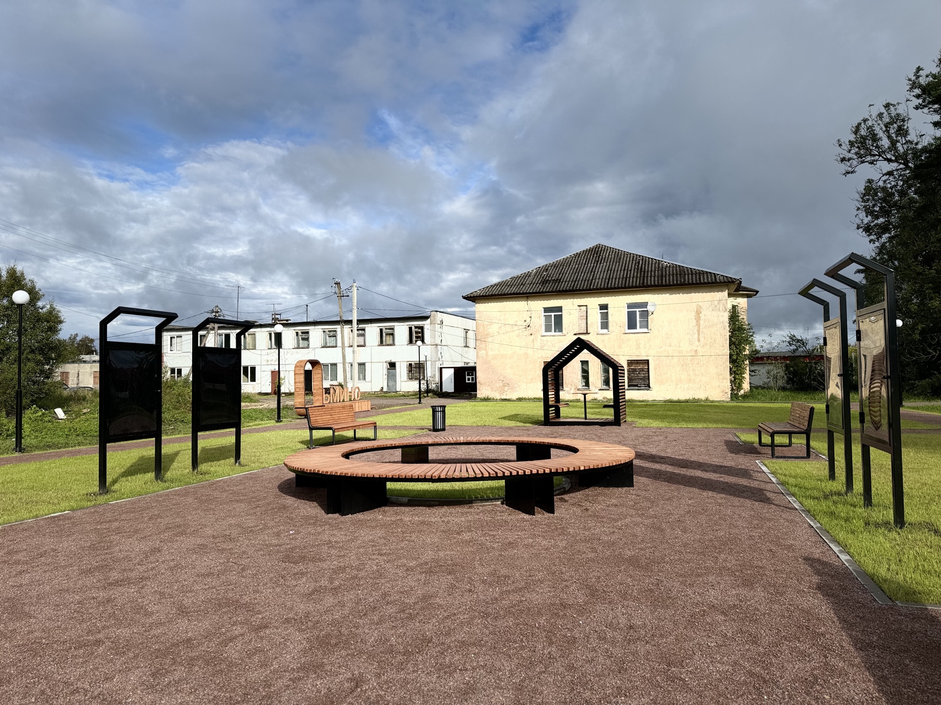 Территорию благоустроили, создав уютную прогулочную зону с дорожками и лавочками для отдыха. Также организована комфортная зона отдыха, где можно расслабиться и насладиться природой. Для малышей построена детская площадка с современными игровыми элементами, а рядом расположена фотозона для комфортных фото. Кроме того, создана зона истории поселения с информационными стендами и инфостендами, позволяющими узнать больше о местной культуре и прошлом.
