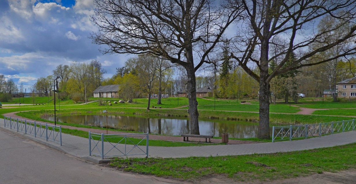 На территории около пруда обустроены уютные тропинки и установлены лавочки, создавая комфортное место для прогулок и отдыха. Также здесь размещён объект, который дополняет общую привлекательность этого зеленого уголка.