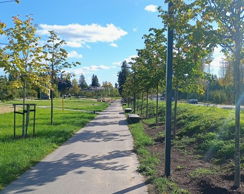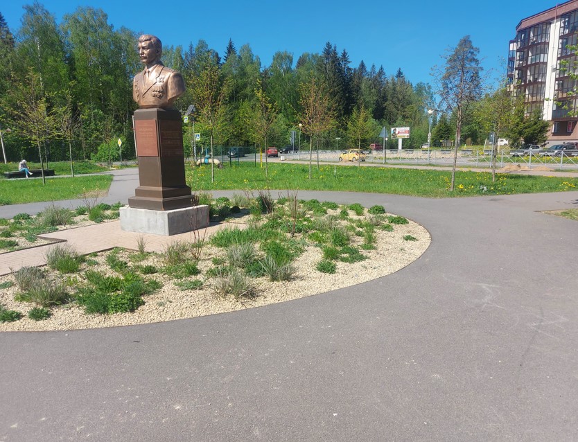 На благоустроенной территории установлены современные осветительные комплексы, обеспечивающие безопасность и комфорт в ночное время. Укрепление склона георешетками дало возможность создать парковочную площадку для удобства автотранспорта. Кроме того, проведена посадка растений и восстановление газонов, что значительно улучшило эстетический вид пространства и создало уютную зеленую зону для отдыха.