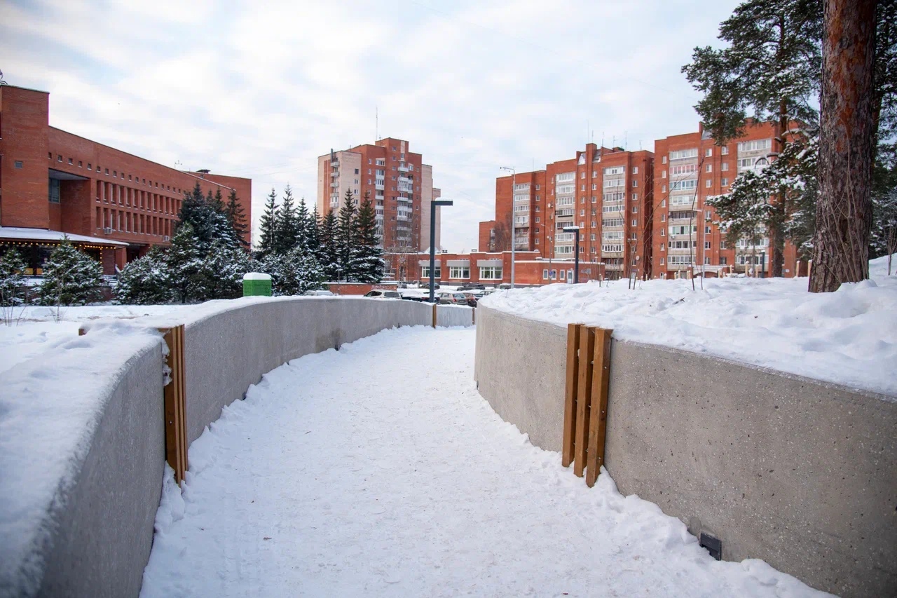 Зона амфитеатра размещена левее от церемониальной площади, данная локация предусмотрена как место встреч и общения с друзьями, также в теплый период времени здесь могут проходить лекции на открытом воздухе, выступления уличных музыкантов, зарисовки.