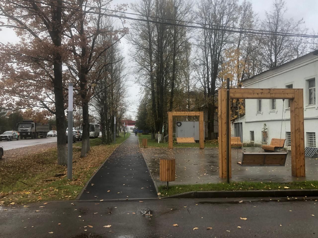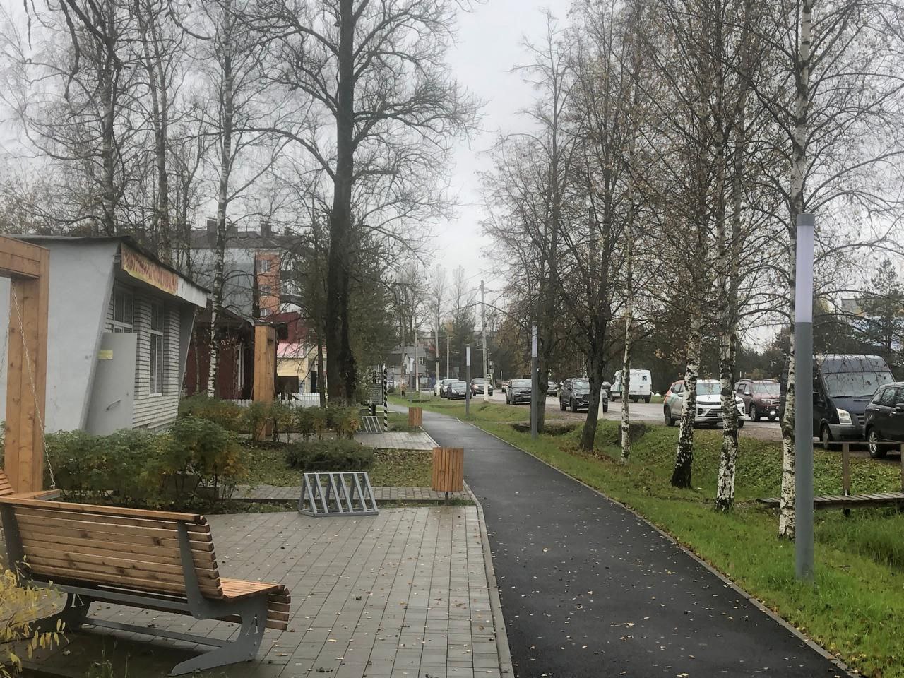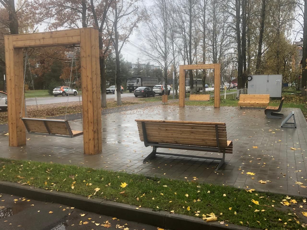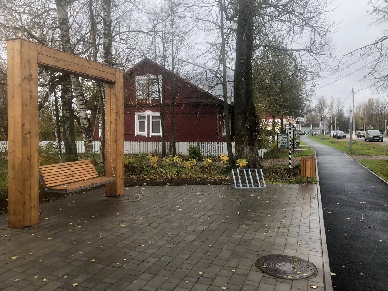 Обновлена пешеходная зона по улице Ленина, установлены качели, лавочки, велопарковка