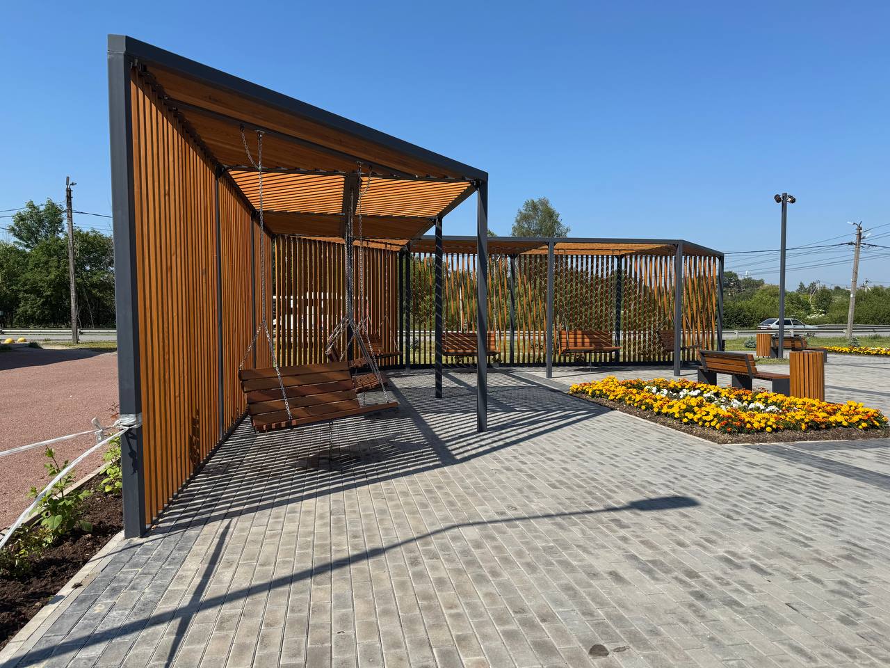 В Форносово благоустроили территорию, установив арт-объект «Звезда» в память о Великой Отечественной войне, что стало важным символом для жителей. Под беседками разместили удобные качели, а также поставили современные скамейки и урны для комфортного отдыха. Это место стало популярным среди местных жителей, сочетая память о прошлом и удобства для настоящего.