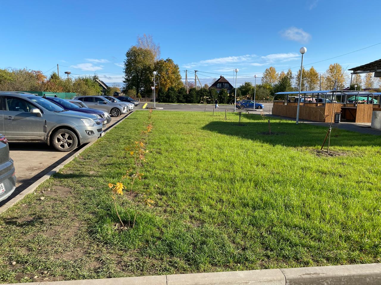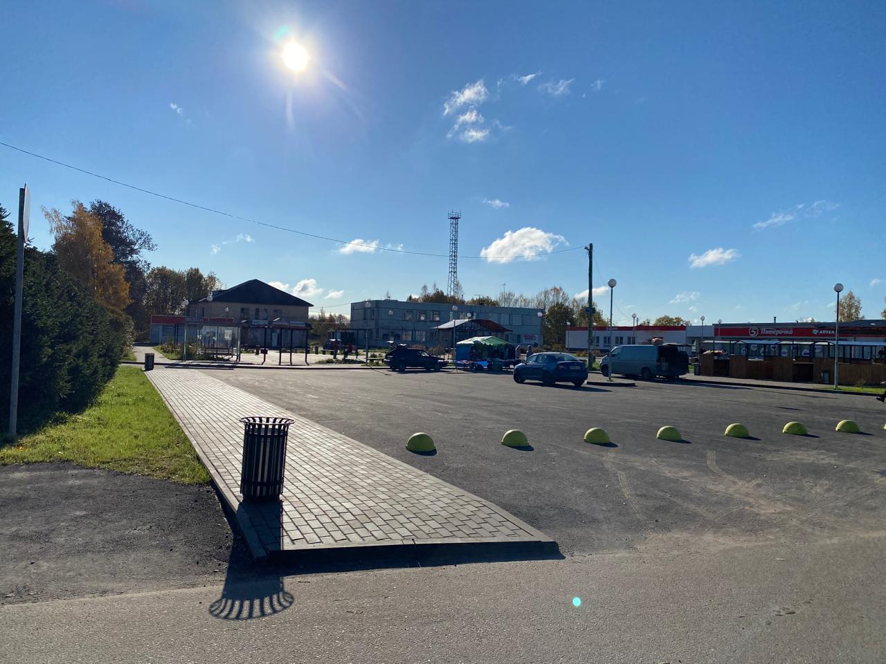 Территория была благоустроена с использованием тротуарной плитки для мощения. Проведено озеленение: посев газона, посадка кустарников и деревьев создали комфортную и эстетически привлекательную обстановку. Также обустроены парковки с асфальтированным покрытием и установлены малые архитектурные формы, включая торговые павильоны, информационные стенды и урны, а система освещения обеспечила безопасность и уют в вечернее время.