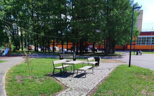 Площадь около дома культуры "Свеча" была полностью благоустроена: благоустроено новое покрытие, установлены качели, лавочки и урны для комфорта посетителей. Также организованы велопарковки и установлено освещение, что создает уютную и безопасную атмосферу для отдыха и прогулок.