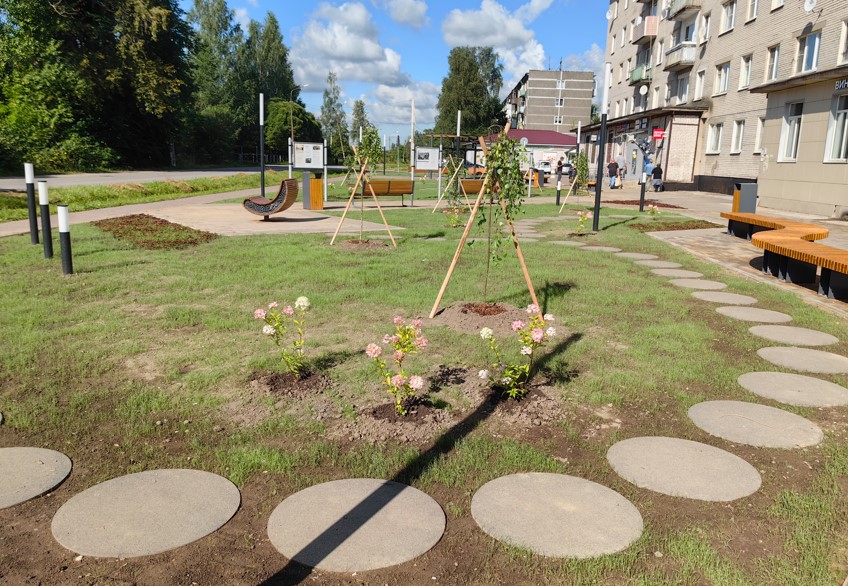 Территория разделена на различные зоны для отдыха населения, которые располагаются вдоль сохраненных существующих транзитов, каждая зона наполнена современными малыми архитектурными формами, такими как городские качели для взрослых, диванами со спинками, радиусными скамьями, вращающимся диваном. На территории предусмотрены: парковка для машин, энергоэффективное освещение с различной высотой опор, озеленение (посадка деревьев, декоративных кустарников и многолетников).