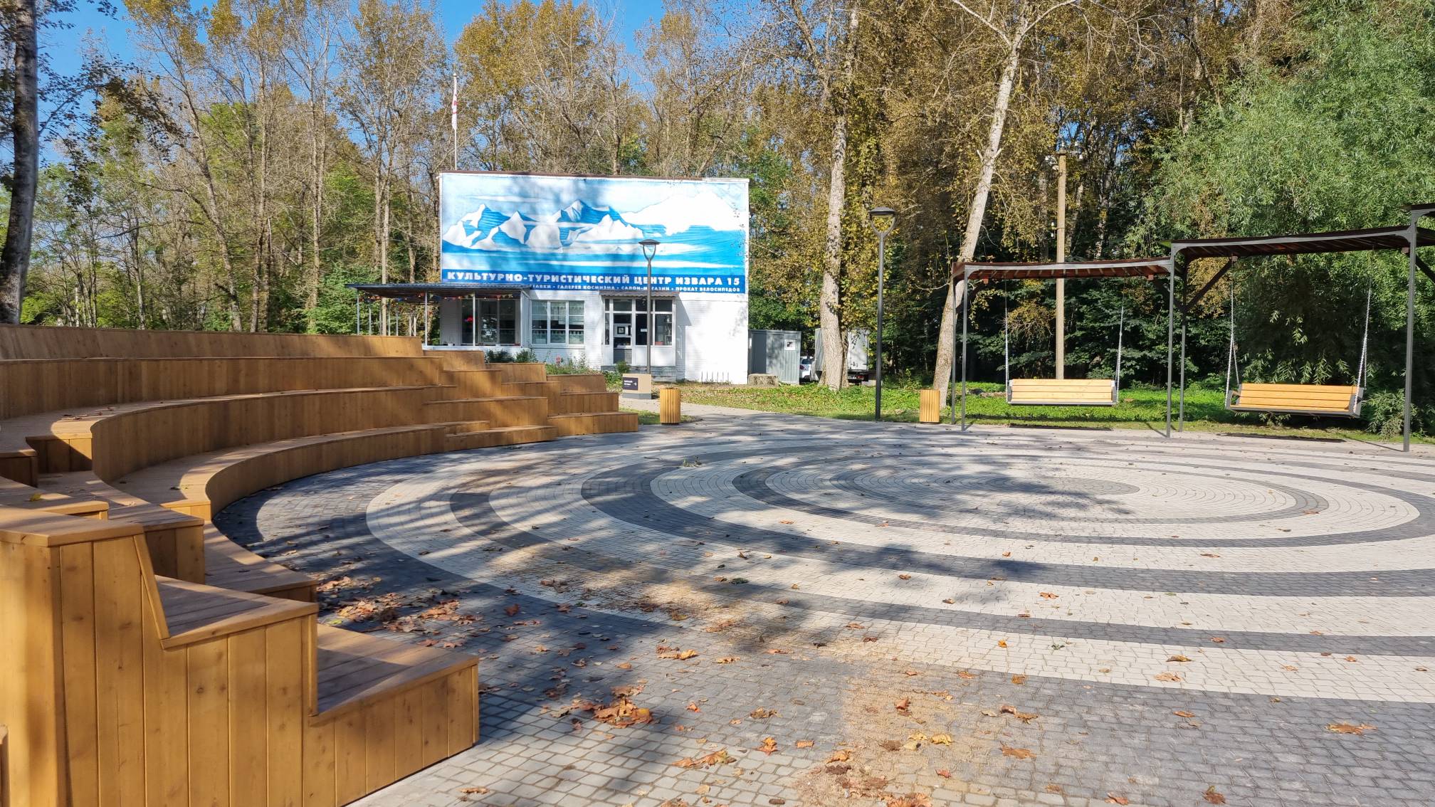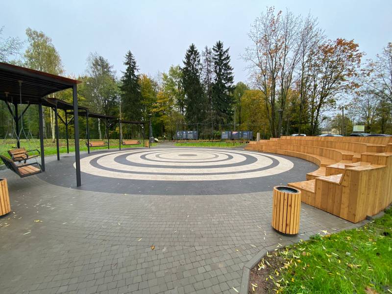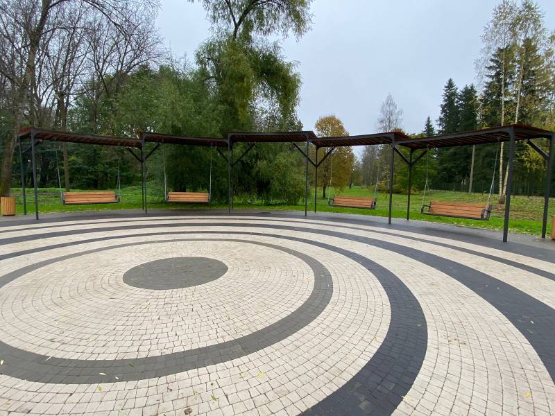 На благоустроенной территории были установлены современные качели, создающие пространство для отдыха и активного времяпрепровождения. Также был построен амфитеатр, который станет местом проведения культурных мероприятий и собраний жителей. Кроме того, установлены лавочки и урны, что обеспечивает комфортный досуг и поддерживает чистоту в общественном пространстве.