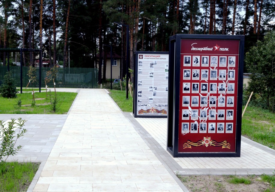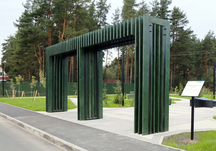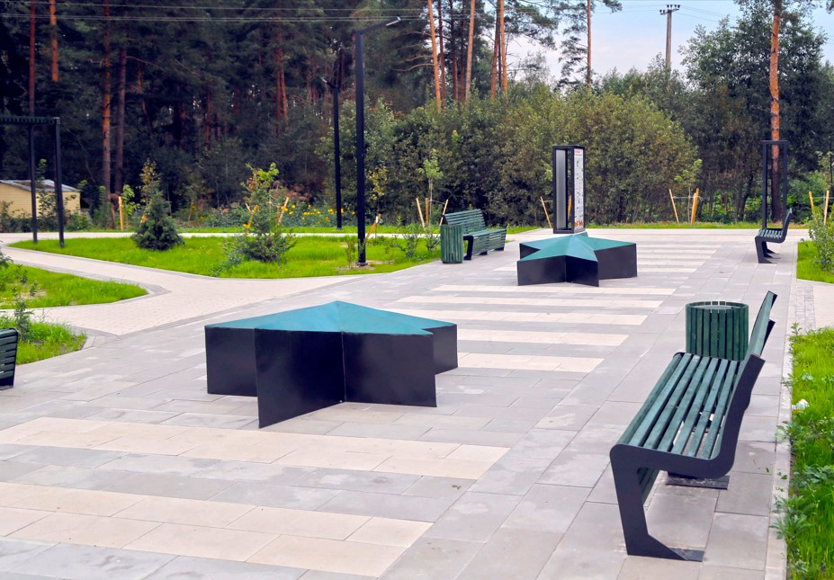 На благоустроенной территории были оформлены входные группы, которые удобно примыкают к асфальтовому тротуару. Главная парадная аллея, выложенная брусчаткой, дополнена арт-объектами, создающими привлекательную атмосферу. Также организованы зоны отдыха с навесами и городскими качелями, а вдоль западной границы участка установлено ограждение, которое можно использовать как выставочное пространство