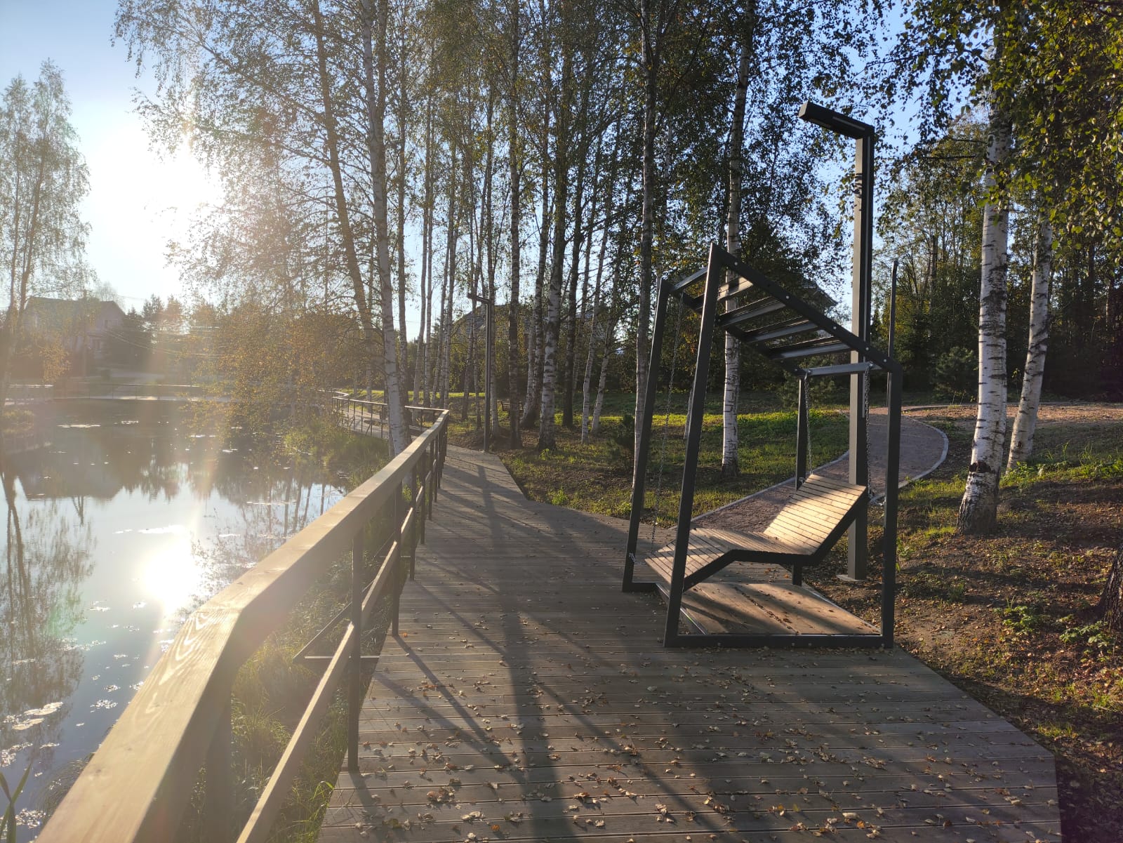На обновлённой территории создана полноценная инфраструктура для комфортного отдыха: благоустроенный водоём с расчищенной территорией, сеть деревянных дорожек приглашает к неспешным прогулкам, современное освещение, уютные зоны отдыха дарят возможность расслабиться и отдохнуть от повседневной суеты.