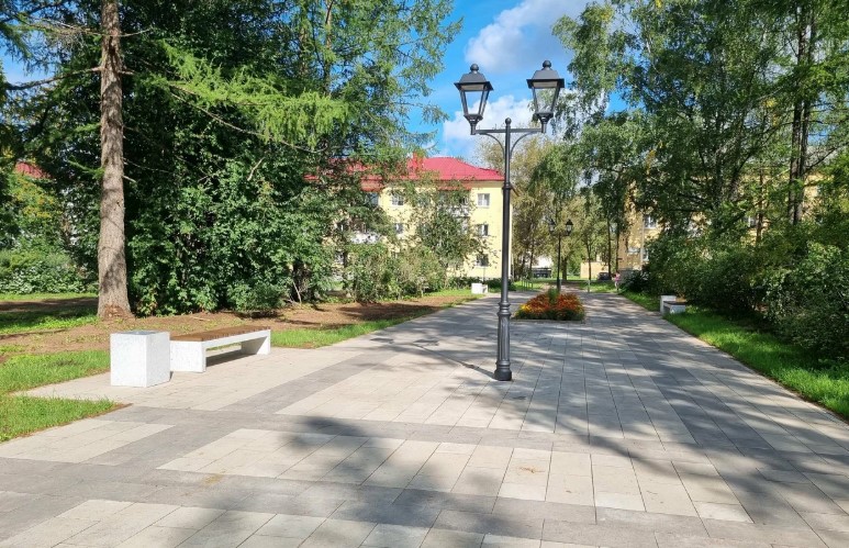 Центральная аллея сквера преображена в уютную зону для отдыха с установленным освещением, удобными лавочками и аккуратными урнами. Проложенные транзитные пути делают территорию доступной и комфортной для прогулок.