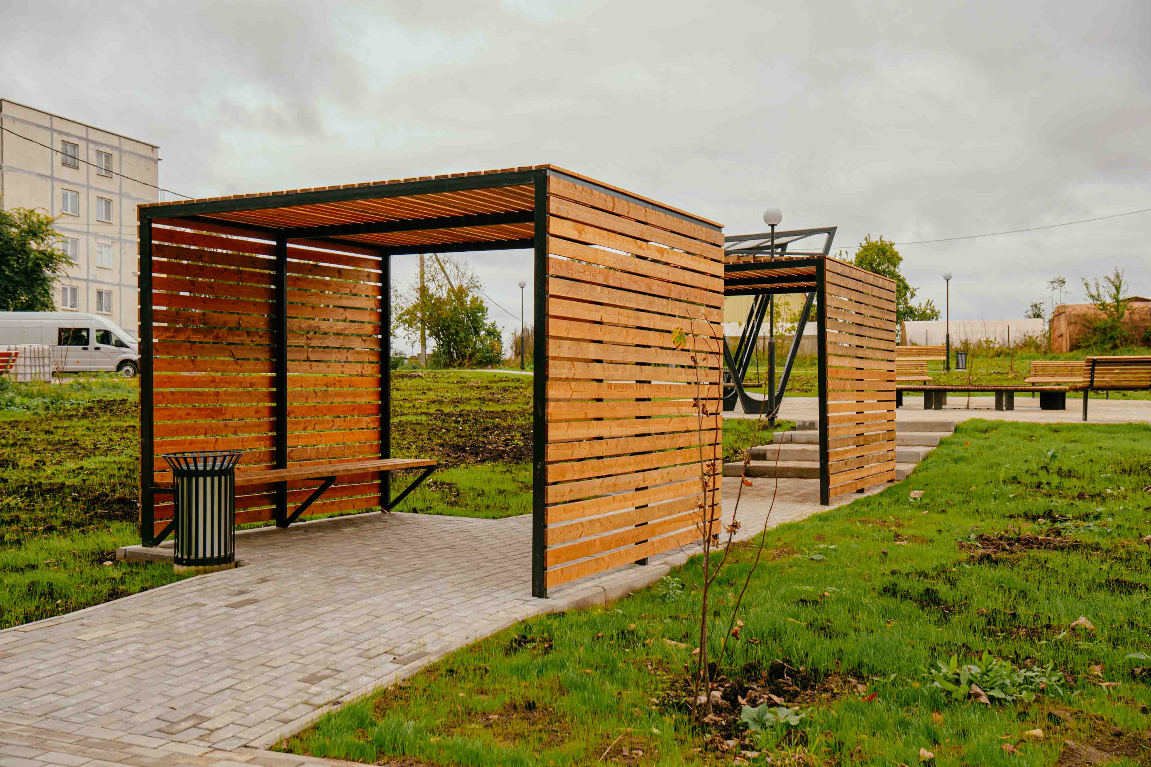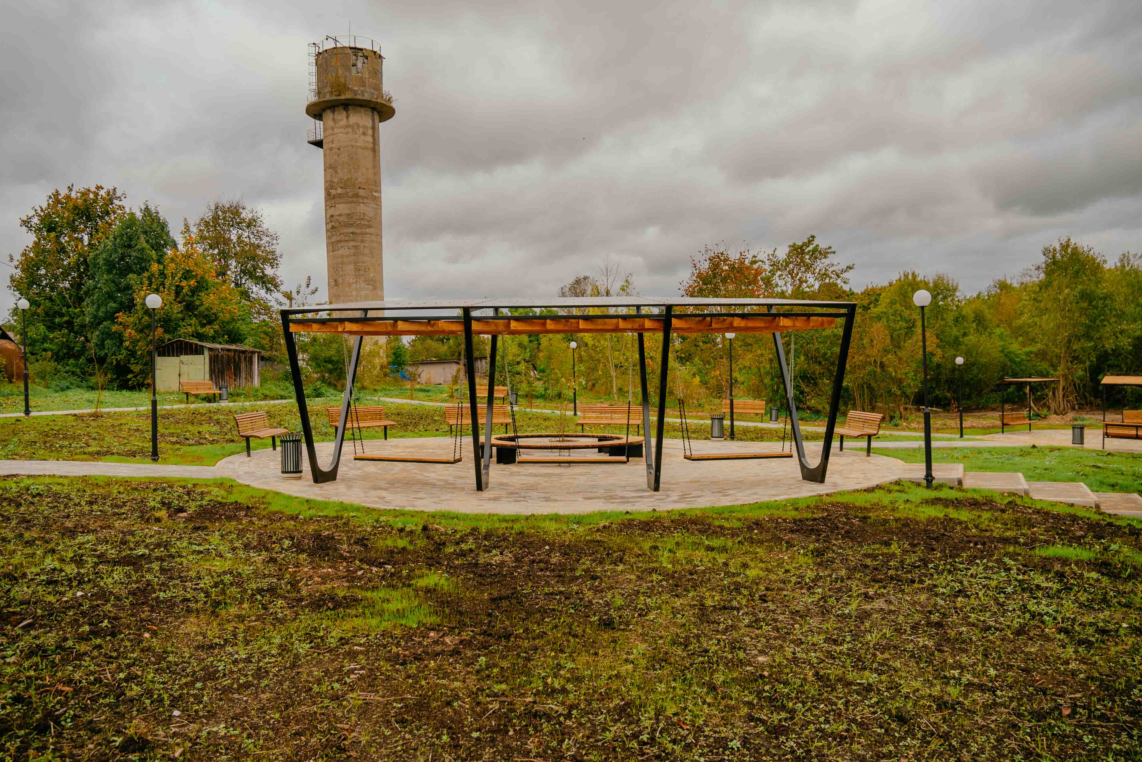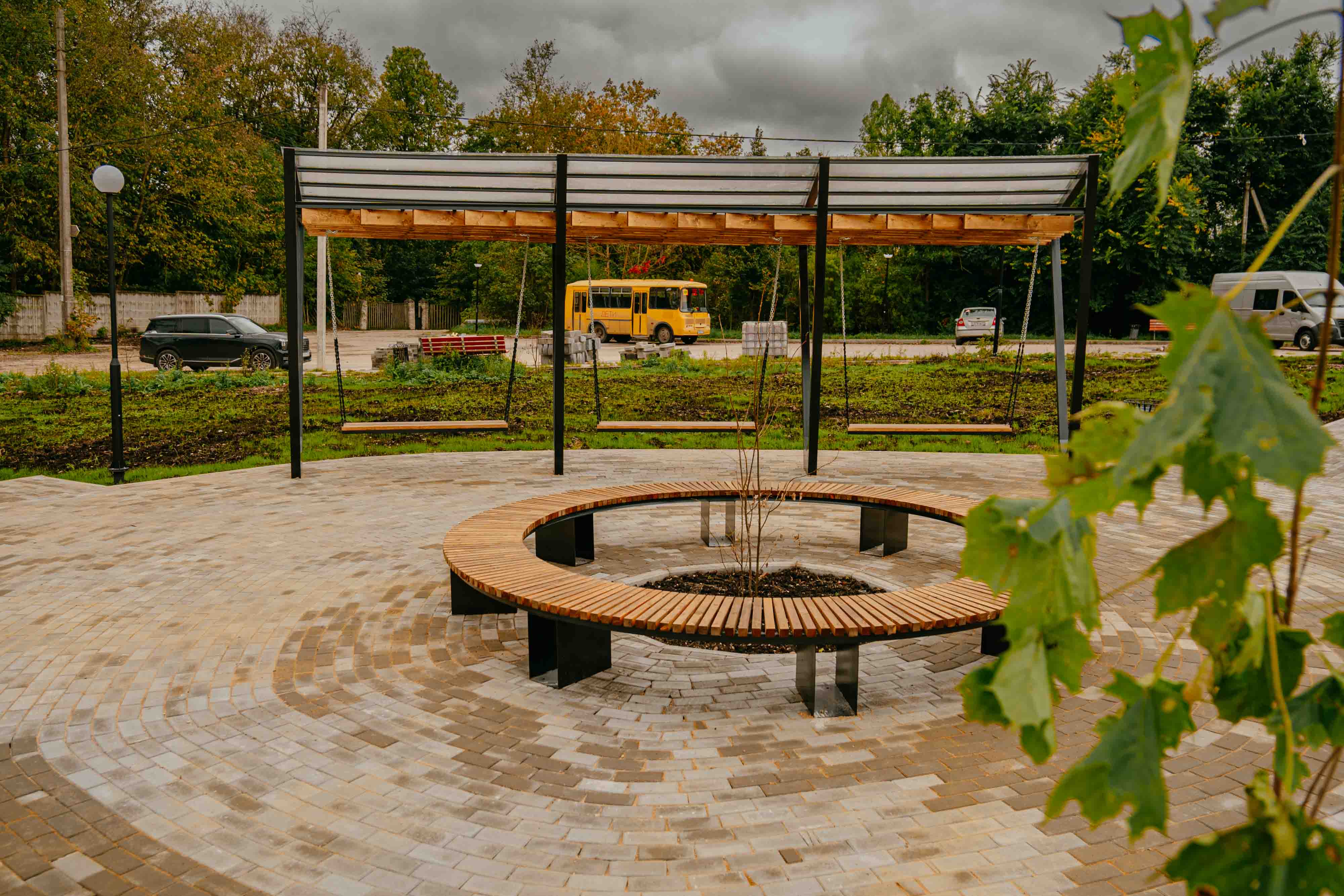 Была организована новая территоия: проложены транзитные пути, установлены качели и навесы, лавочки и урны