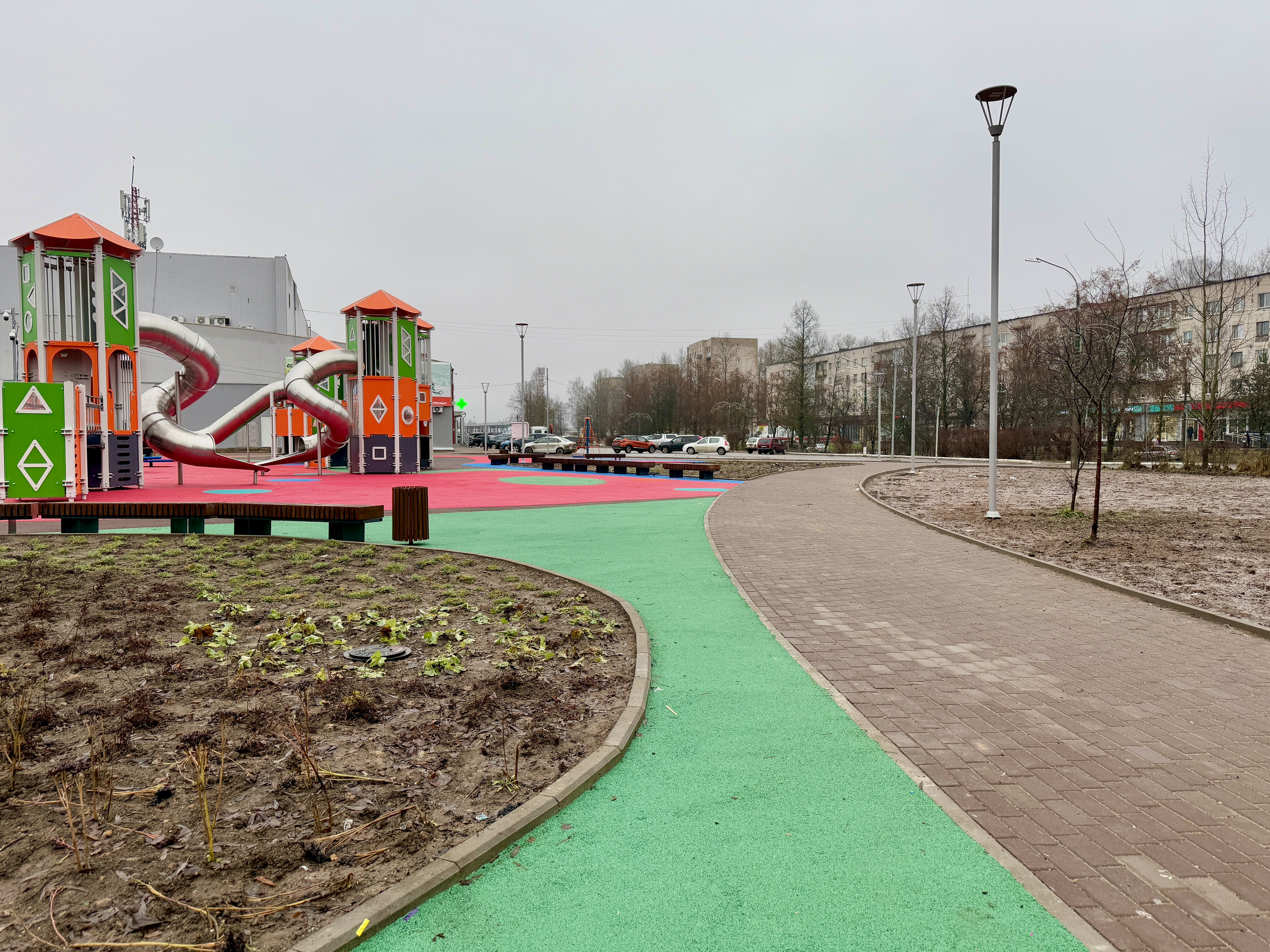 Проектом предусмотрен ремонт существующих пешеходных дорожек и устройство широкого тротуара с площадками для скамеек. Вся система дорожек и тротуаров образует уютный прогулочный маршрут с местами для отдыха. Проложены новые дренажные коммуникации и сформированы газоны. На всей территории благоустройства установлено современное уличное освещение.