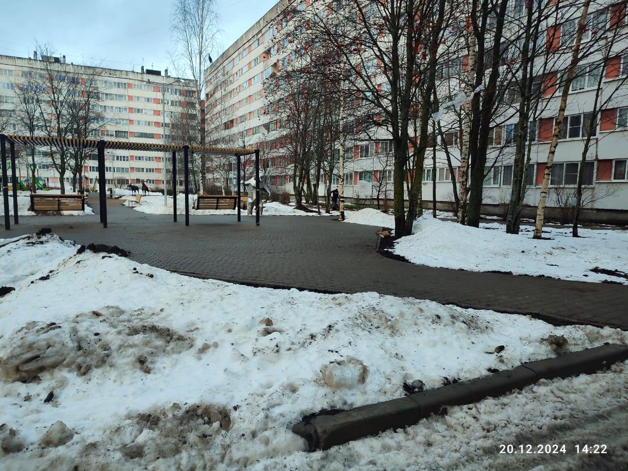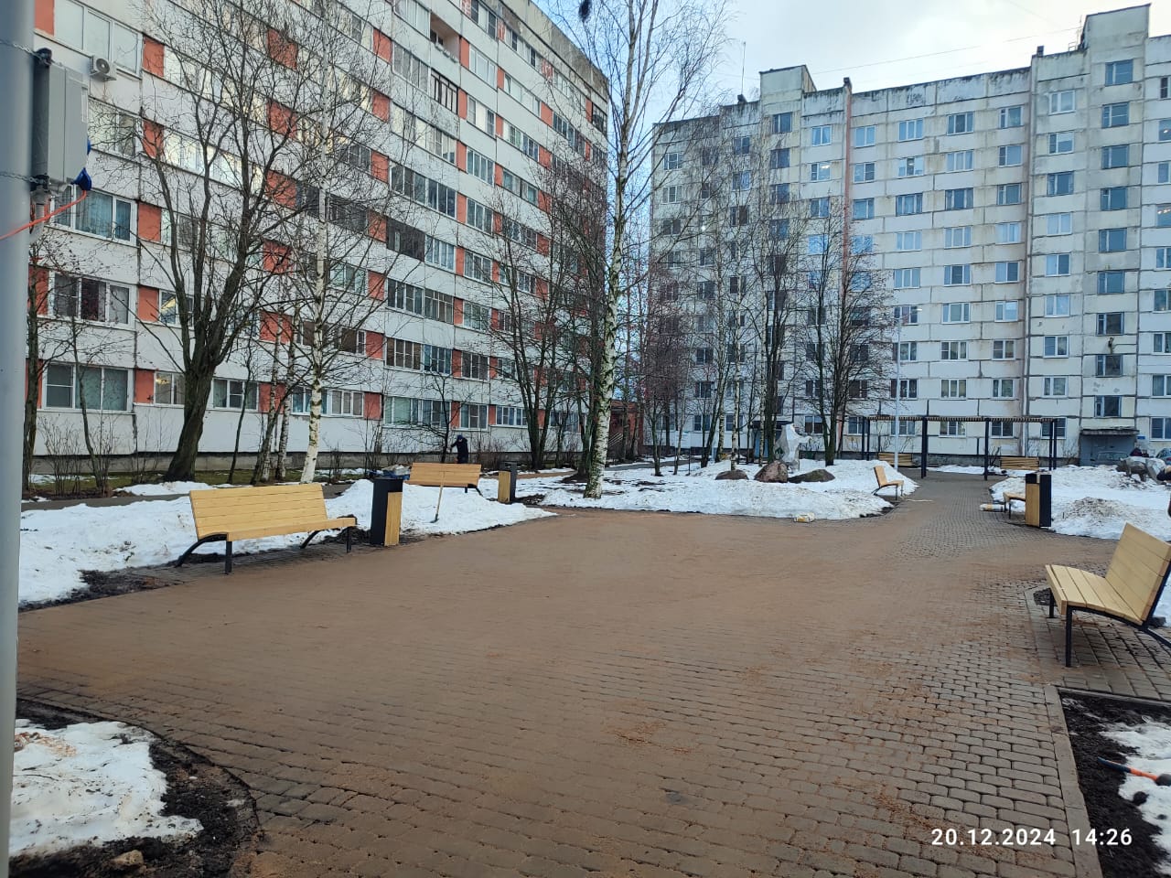 В центральной части сформировалась площадка, где в зимний период времени, на новогодние праздники, можно будет разместить елку.