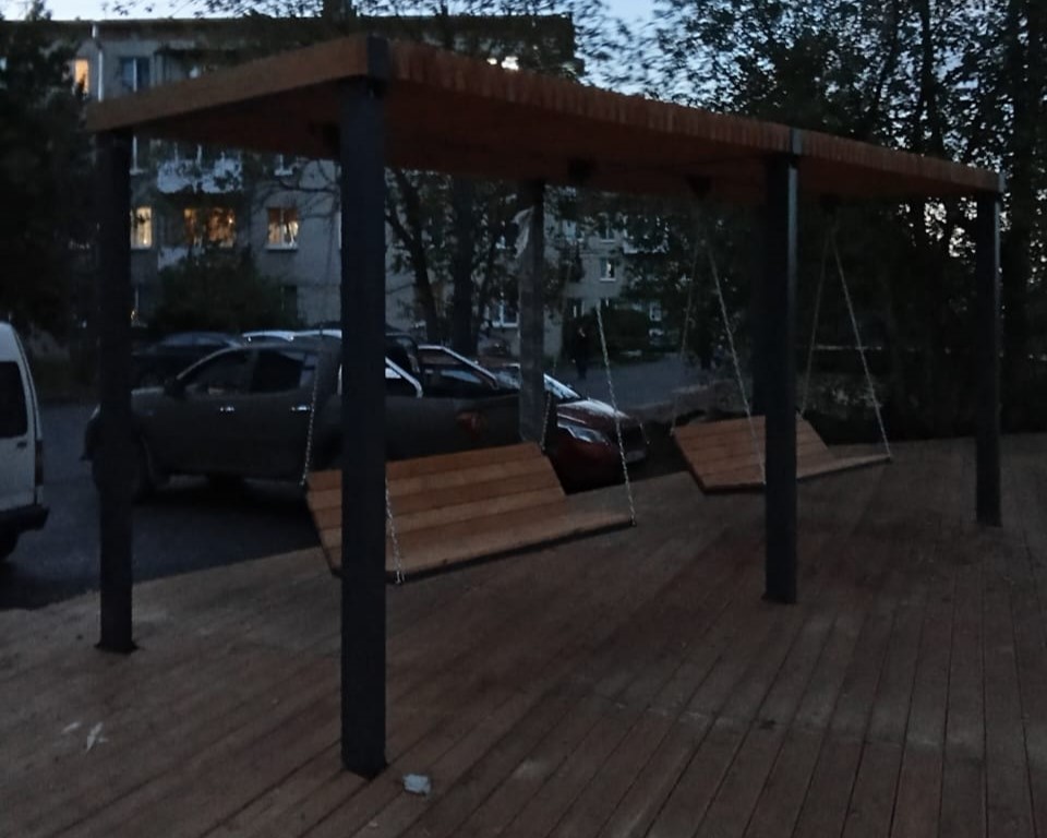 Обустроенна территоия, с которой будет открываться вид на поселение. Для удобства посетителей на смотровой площадке установлены качели