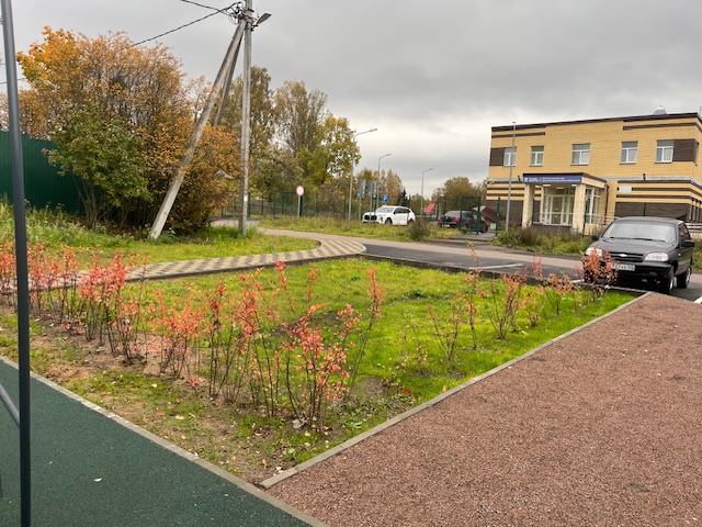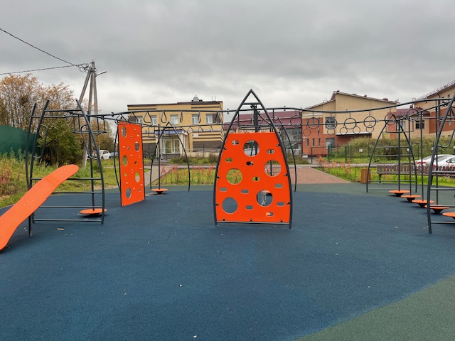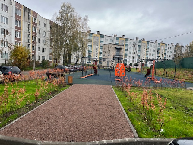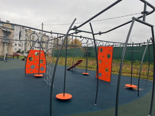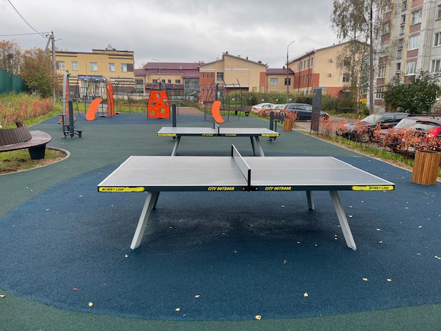 На благоустроенной территории установлена новая детская игровая площадка, которая предлагает разнообразные конструкции для игры и развития детей. В игровой зоне было положено безопасное покрытие, обеспечивающее защиту детей во время игр. Также установлены теннисный стол, лавочки и урны, что создаёт комфортные условия для отдыха и поддержания чистоты.