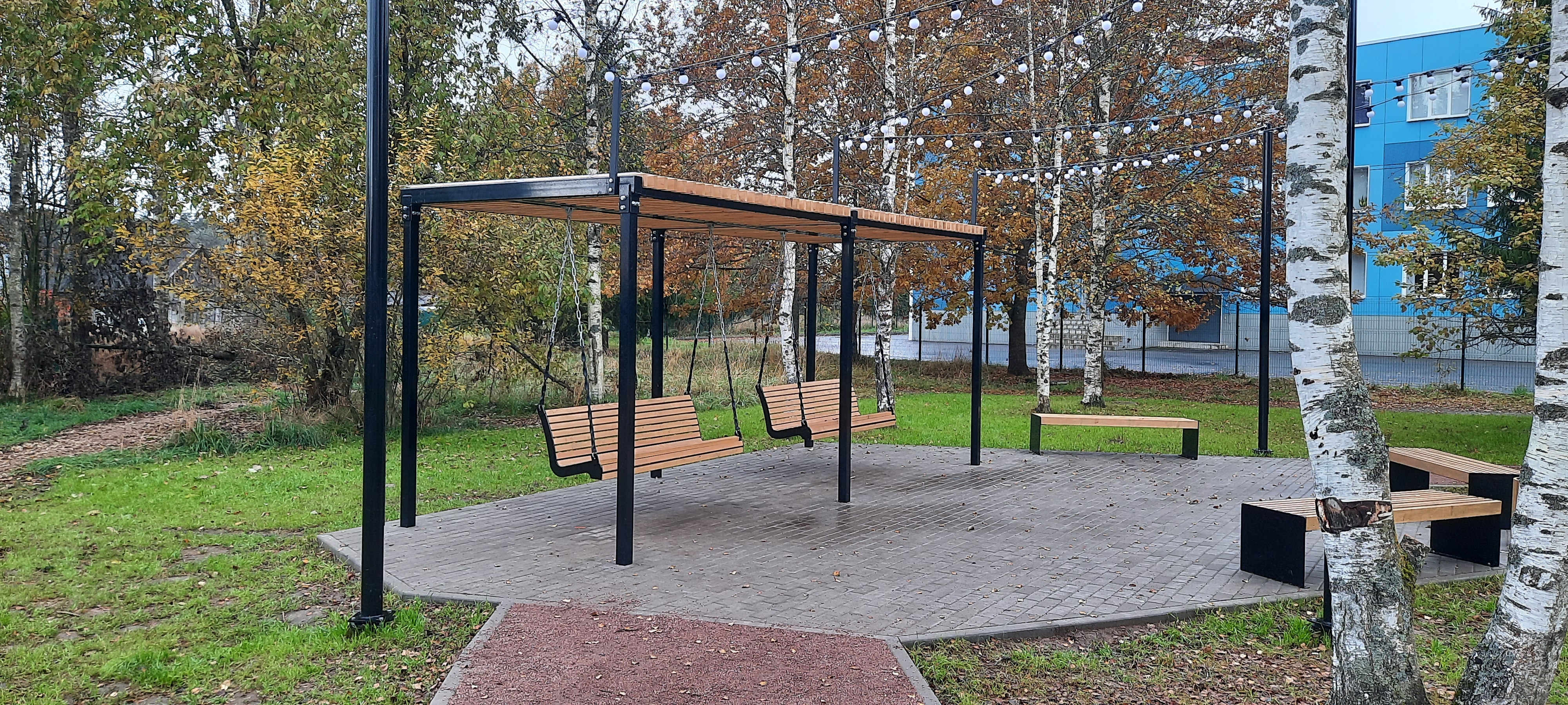 Создание функционально разнообразного пространства спортивной площадки у Заклинской СОШ. Спортивная площадка с тренажерами, многофункциональной уличной рамой и зоной для функционального тренинга на мягком резиновом покрытии, площадка для игры в настольный теннис на мягком резиновом покрытии, зона отдыха с городскими качелями и атмосферными огоньками парковой гирлянды.