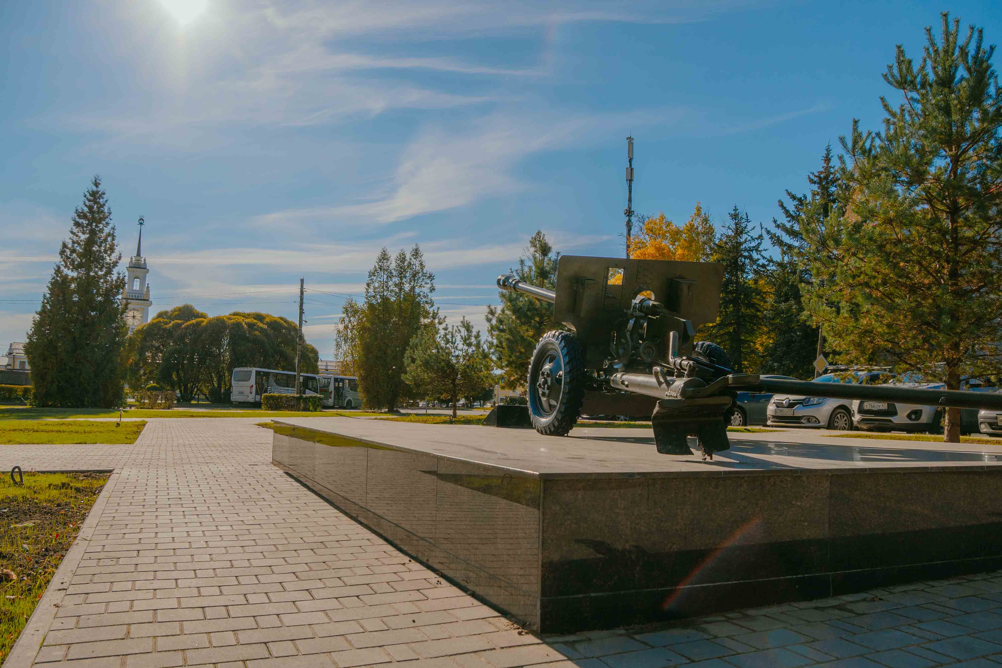 . Мемориальная зона имеет два сценария использования: будничный и праздничный. Для реализации первого сценария особенно важны два аспекта: комфорт среды (обновление и добавление новых покрытий для актуальных пешеходных маршрутов, освещение, МАФы) и элементы для привлечения и удержания внимания посетителей (информационные стенды с подсветкой и поддержкой орнамнтом мощения, подсветка ЗИС-3). Для реализации праздничного сценария предлагается устройство расширенной пешеходной дорожки (4 м), расширение дорожки до ЗИС-3 и создание перед ним площадки для размещение большего числа людей (для ежегодного шествия в честь праздника 9 мая.