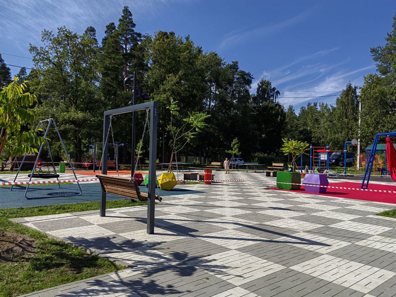 К преимуществу территории следует отнести высокие сосны, отгораживающие территорию от проезжей части.
