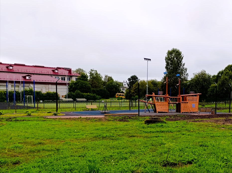 Общественное пространство «У школьного стадиона» является частью ранее разработанной авторским коллективом концепции благоустройства большого общественного пространства (1,97 га) под названием «Зелёная зона отдыха». Цели создания Зелёной зоны отдыха: восстановить историческую память о природных объектах поселения; способствовать экологическому оздоровлению малого водоёма - древнего природного реликта; стать местом для вечернего моциона пожилых людей. Исходя из этого, основной задачей стало благоустройство активного транзита для рабочих и школьников, а также для моциона любителям пеших прогулок через соседние общественные пространства. Это и путь к автобусным маршрутам, и создание новой детской площадки, удовлетворяющей потребности детей разных возрастов. Уникальная детская площадка в форме корабля, станет не только местом проведения досуга рядом живущих детей, но и точкой притяжения всего поселка. Кроме того, в проект были заложены пешеходные связи, соединяющие проектируемую территорию с благоустраиваемой территорией «У холодного ручья» в рамках ФКГС в 2023 – 2024 годах, а также островки для отдыха на маршруте от детского сада, школы и ФОКа.