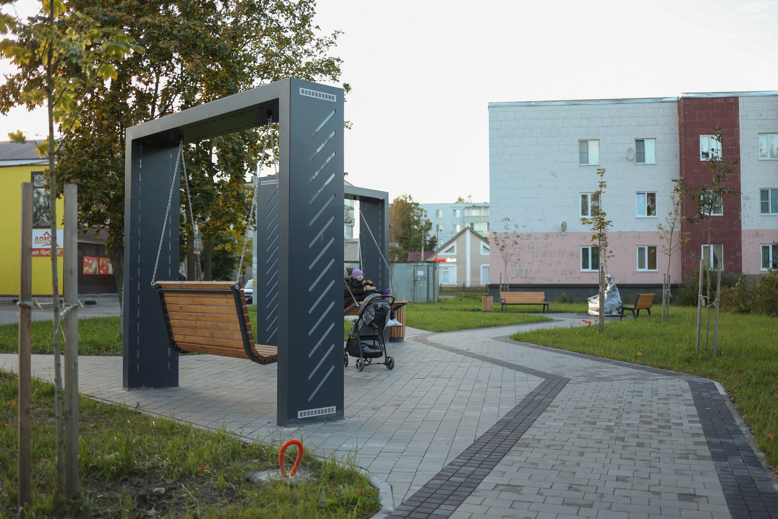 Общественная территория соединила реализованные ранее проекты благоустройства проспекта Карла Маркса от моста до кольца и улицы Суворова от проспекта Карла Маркса до Георгиевской церкви. Территория находится на активном пешеходном транзите в густонаселенном микрорайоне «В» по пути следования в торговые точки и почту. Здесь же организована зона для размещения объектов НТО с удобным подходом для жителей. При благоустройстве появился новый сквер с памятником почтальону, пешеходными дорожками, озеленением, качелями, освещением, тач скрин панелью, обновлено покрытие тротуаров, установлен гобопроектор на пешеходном переходе.
