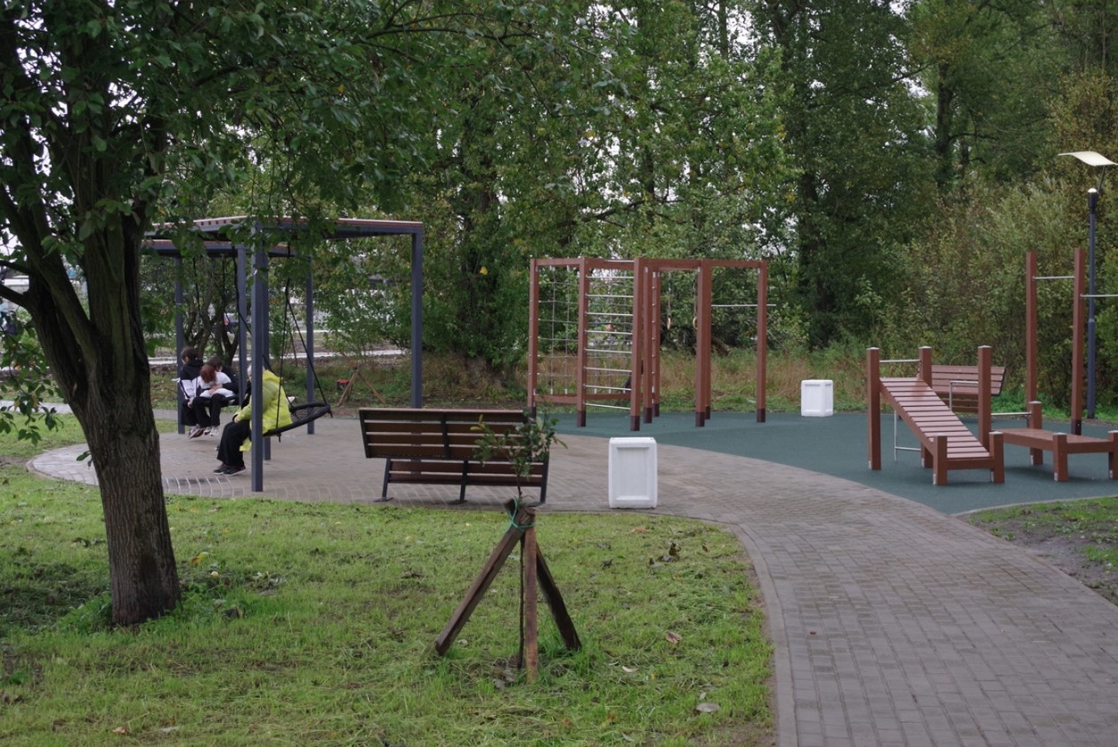 Было произведено комплексное благоустройство общественной территории. Территория была благоустроена за счет создания удобных пешеходных дорожек и игровой зоны с качелями, что сделало её привлекательной для семей с детьми. Установленные урны и скамейки способствуют поддержанию чистоты и комфортного отдыха. Инфостенд с описанием территории и инсталляция с названием города добавляют информативности и подчеркивают местную идентичность.